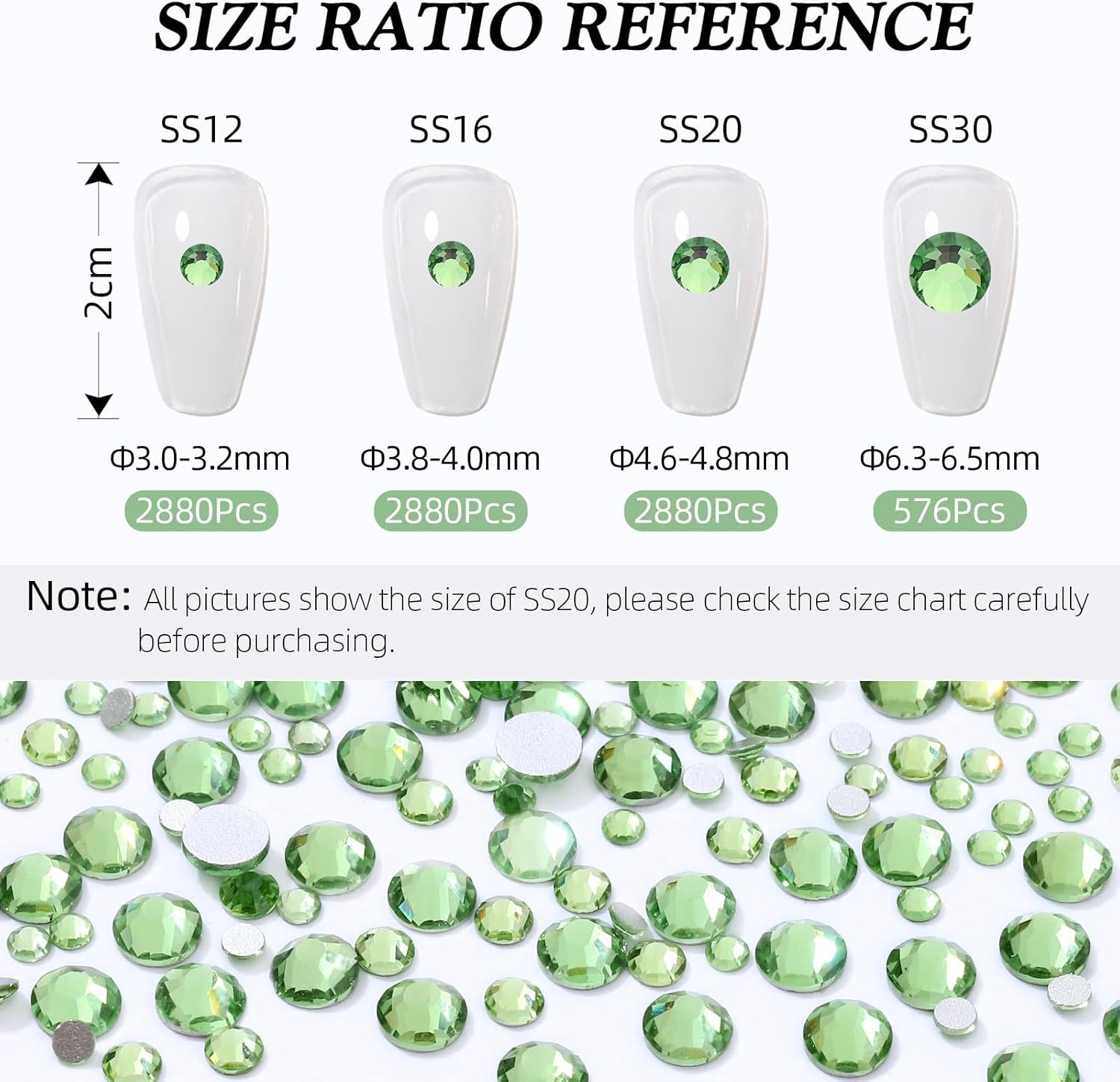 Light Green Flatback Rhinestones, Glass Rhinestones for Nail Art and Craft, Glue Fix, Loose Crystal Gemstones(Lt.Green, SS20, 2880pcs, 4.6-4.8mm)
