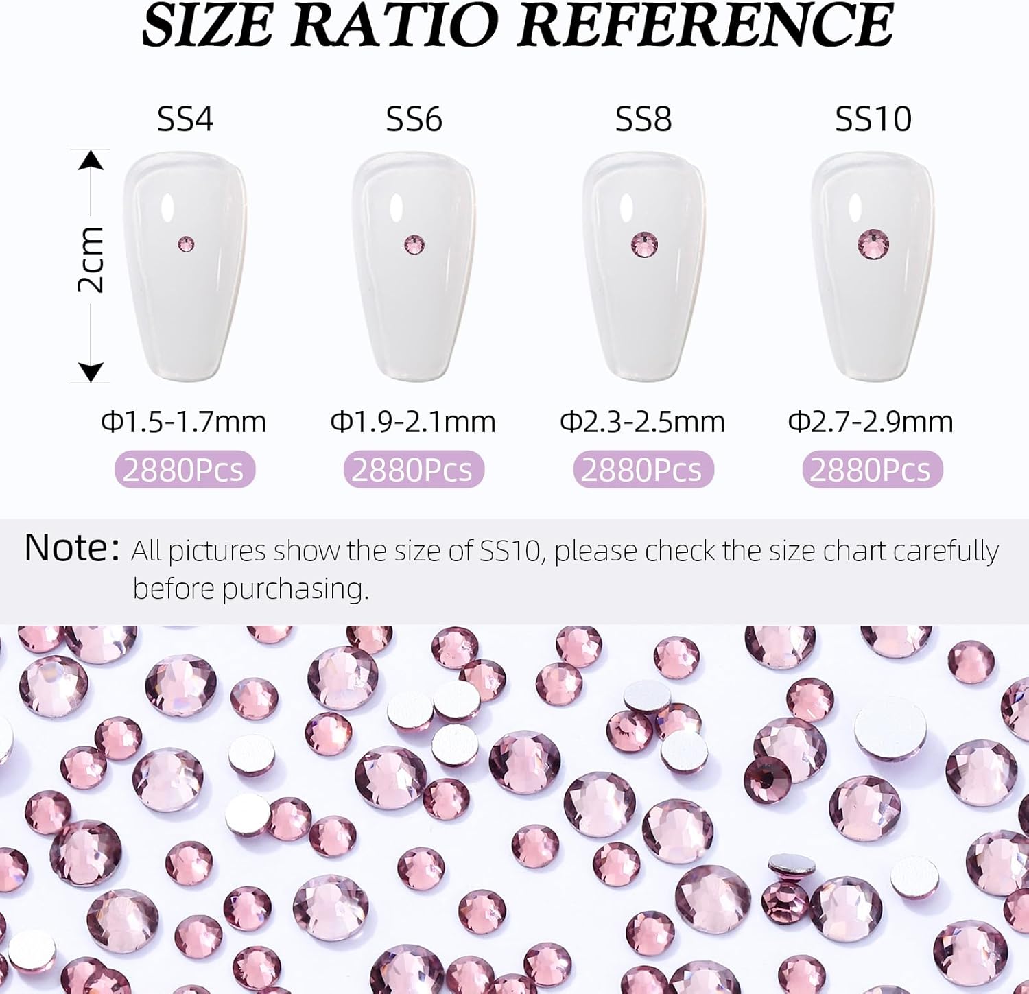 Light Amethyst Flatback Rhinestones, Glass Rhinestones for Nail Art and Craft, Glue Fix, Loose Crystal Gemstones(Lt.Amethyst, SS6, 2880pcs, 1.9-2.0mm)
