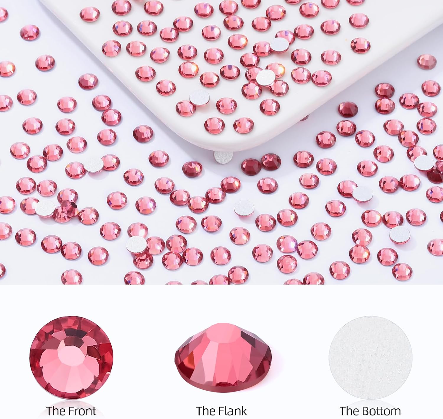 Rose Flatback Rhinestones, Glass Rhinestones for Nail Art and Craft, Glue Fix, Loose Crystal Gemstones(Rose, SS34, 576pcs, 7.1-7.3mm)