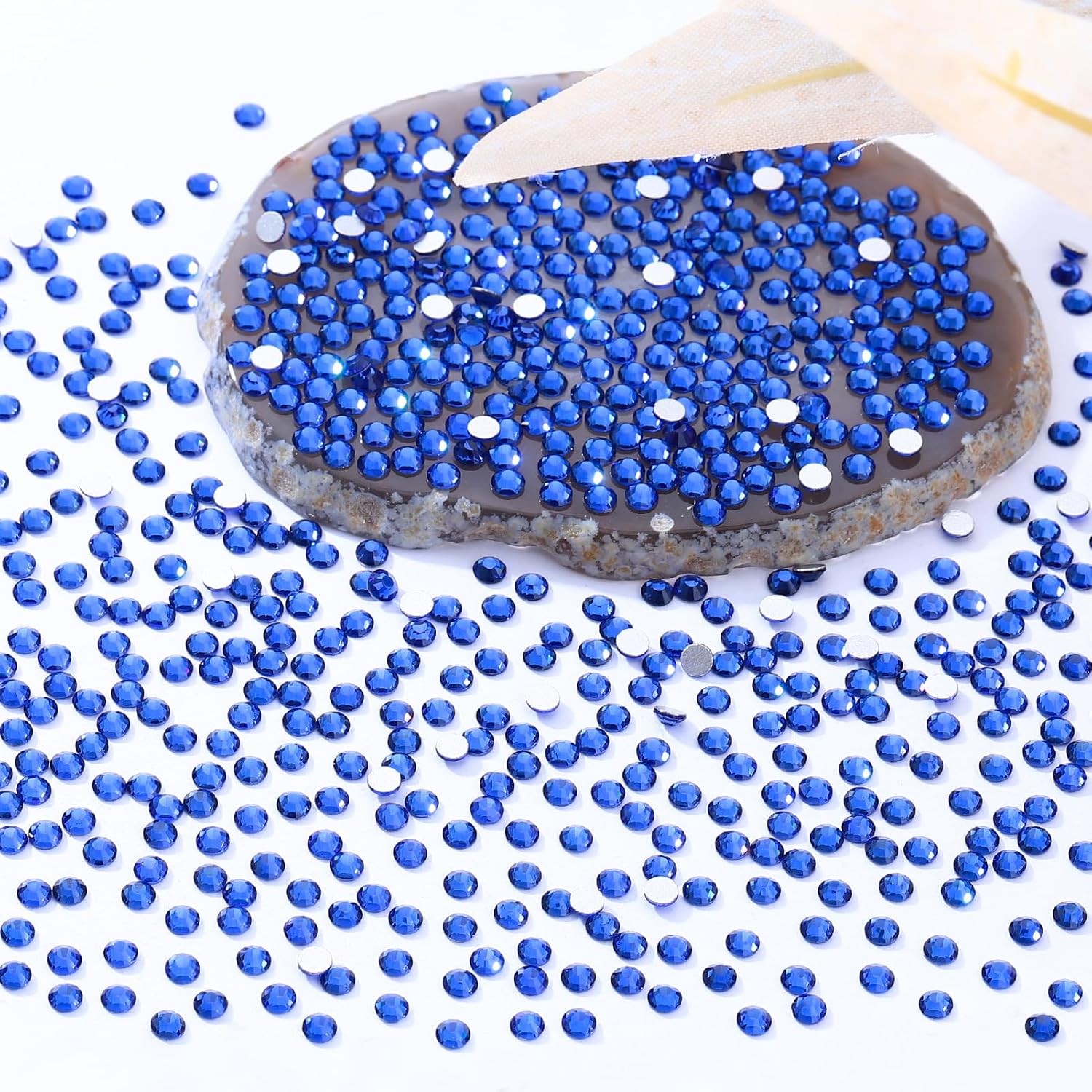 Sapphire Flatback Rhinestones, Glass Rhinestones for Nail Art and Craft, Glue Fix, Loose Crystal Gemstones(Blue, SS6, 2880pcs, 1.9-2.0mm)