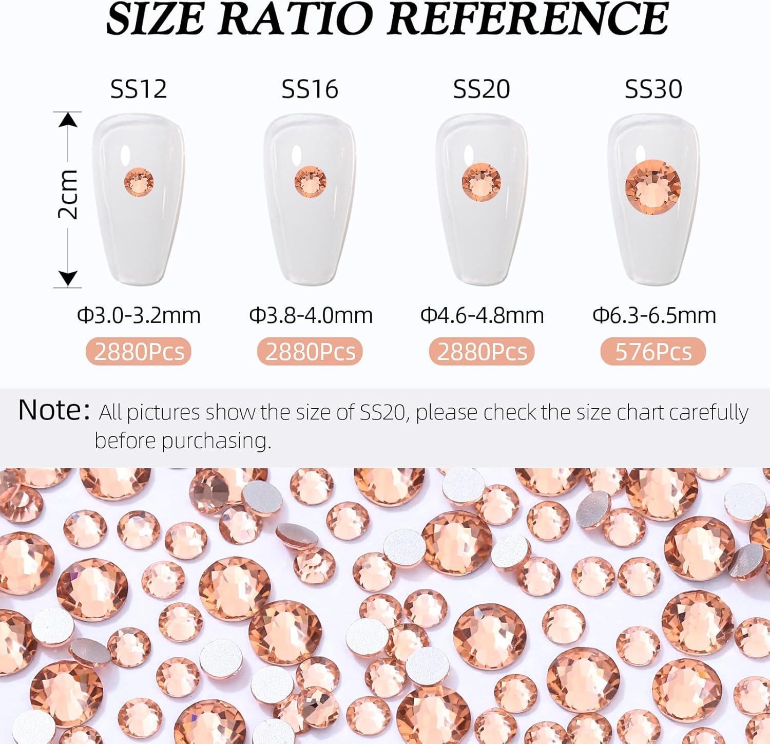 Champagne Flatback Rhinestones, Glass Rhinestones for Nail Art and Craft, Glue Fix, Loose Crystal Gemstones(Champagne, SS30, 576pcs, 6.4-6.6mm)