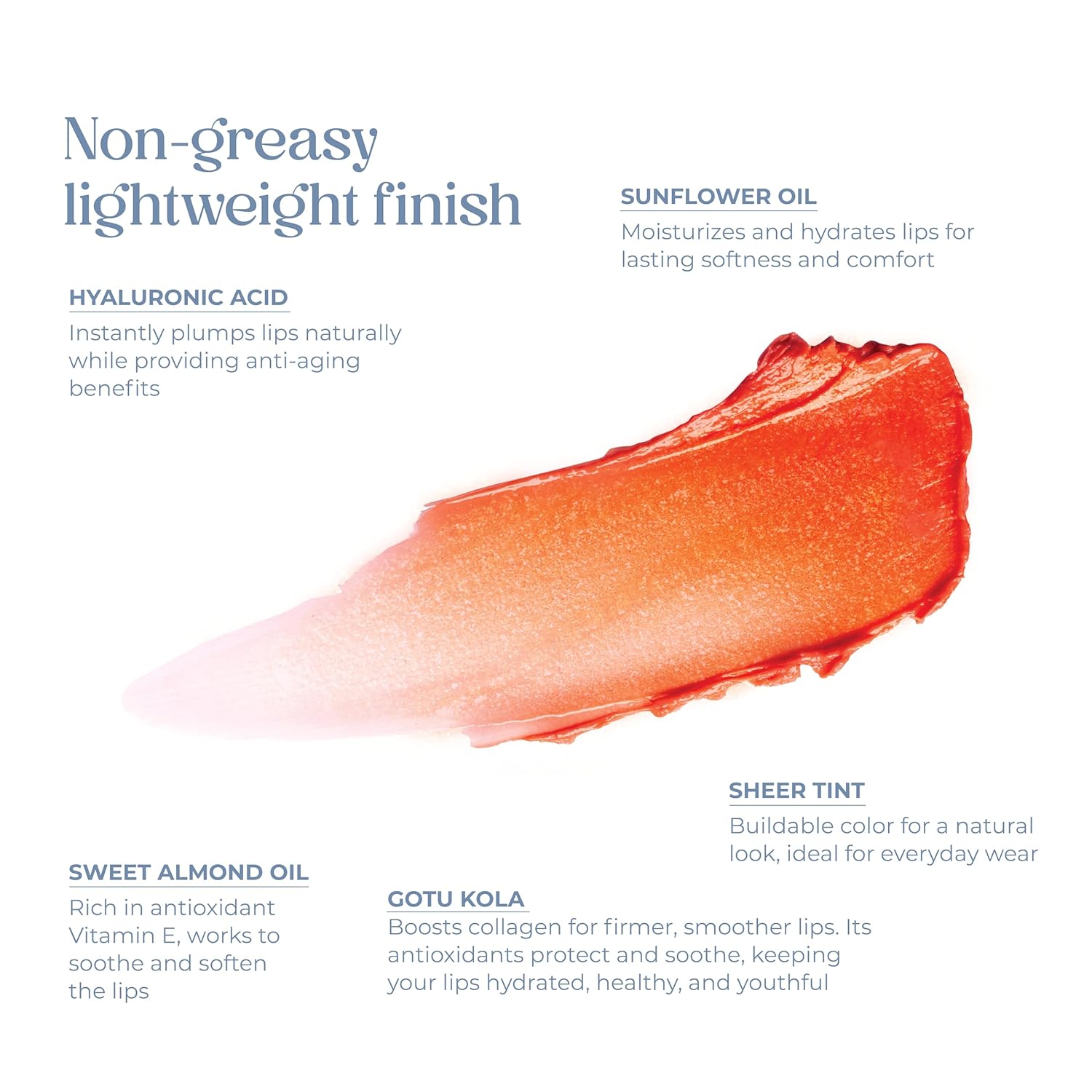 - Sunflower Oil and Sweet Almond Oil: Light, non-greasy oil rich in vitamin E, ideal for your skin care. Nourishing and soothing, perfect for moisturizing and calming skin. Nourishes and revitalizes the lips, making them look and feel healthier.