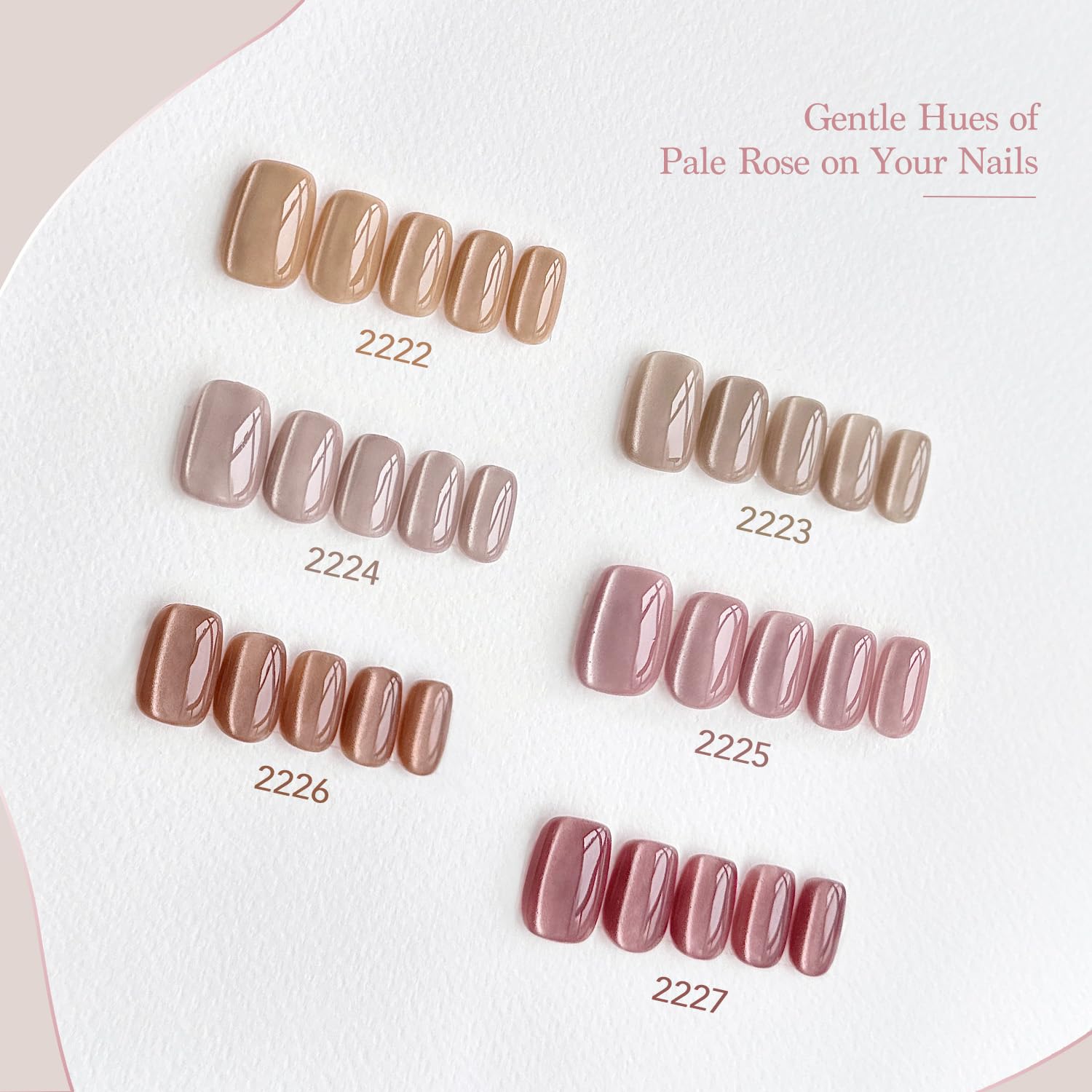 - PACKAGE INCLUDES: 6 gel polish colors of 0.25 fl.oz (7.3ml) each + cat eye magnet. Professional gel nail set to enjoy the nail art from the comfort of your own home!