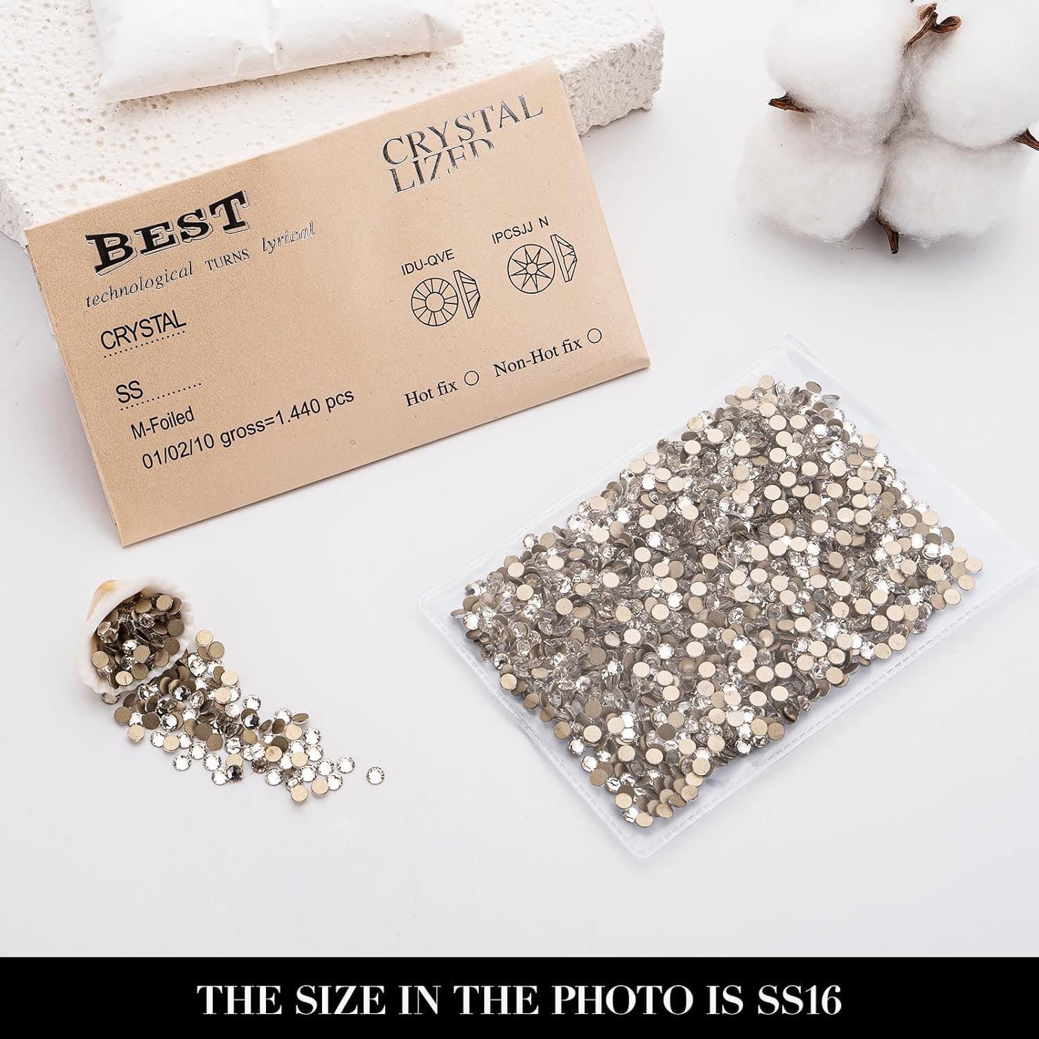 - PACKAGE DETAILS: Pack of 1440 pieces Clear rhinestones SS16, size 3.8-4.0mm.