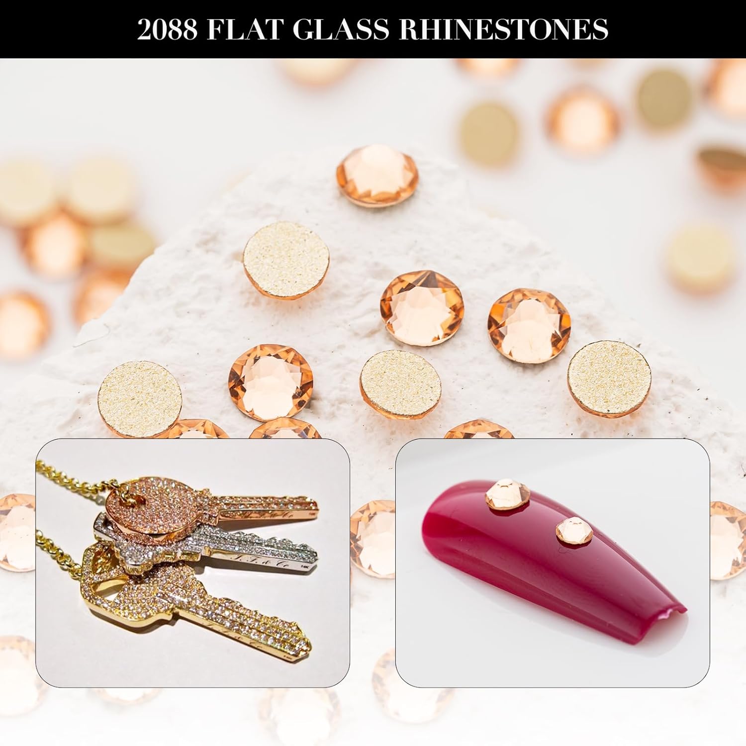 - HIGH-QUALITY MATERIAL AND LEAD-FREE: The rhinestones are made of upgraded glass and formed through advanced cutting processes. The back of the rhinestone has a metallic coating that reflects light, making the rhinestone sparkle like a diamond.