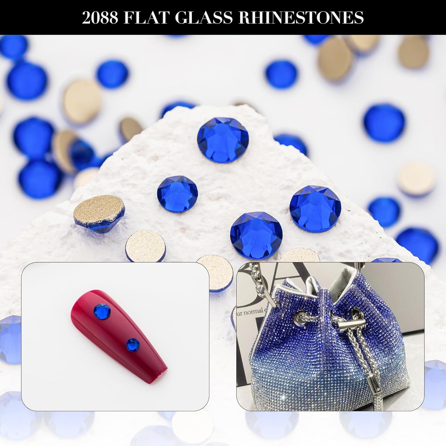 Novani Sapphire/Royal Blue Rhinestones 1440pcs Flat Back Round Rhinestone Style 2088 Sparkly Crystal Gemstones for Nail Art and Crafting SS20,4.6-4.8mm