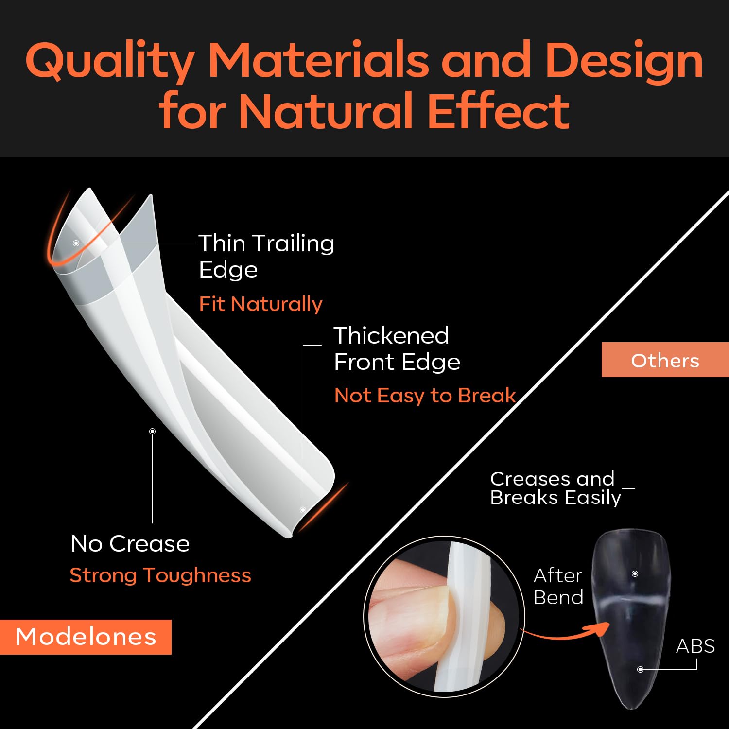 - Upgrade High-Quality Material: Modelones nail tips are made with high-quality material, they are breathable, lightweight, and durable, making your nails look natural and nice. Have no toxins, no smell, and no harm to your nails and health. Pre-shaped and easy to apply