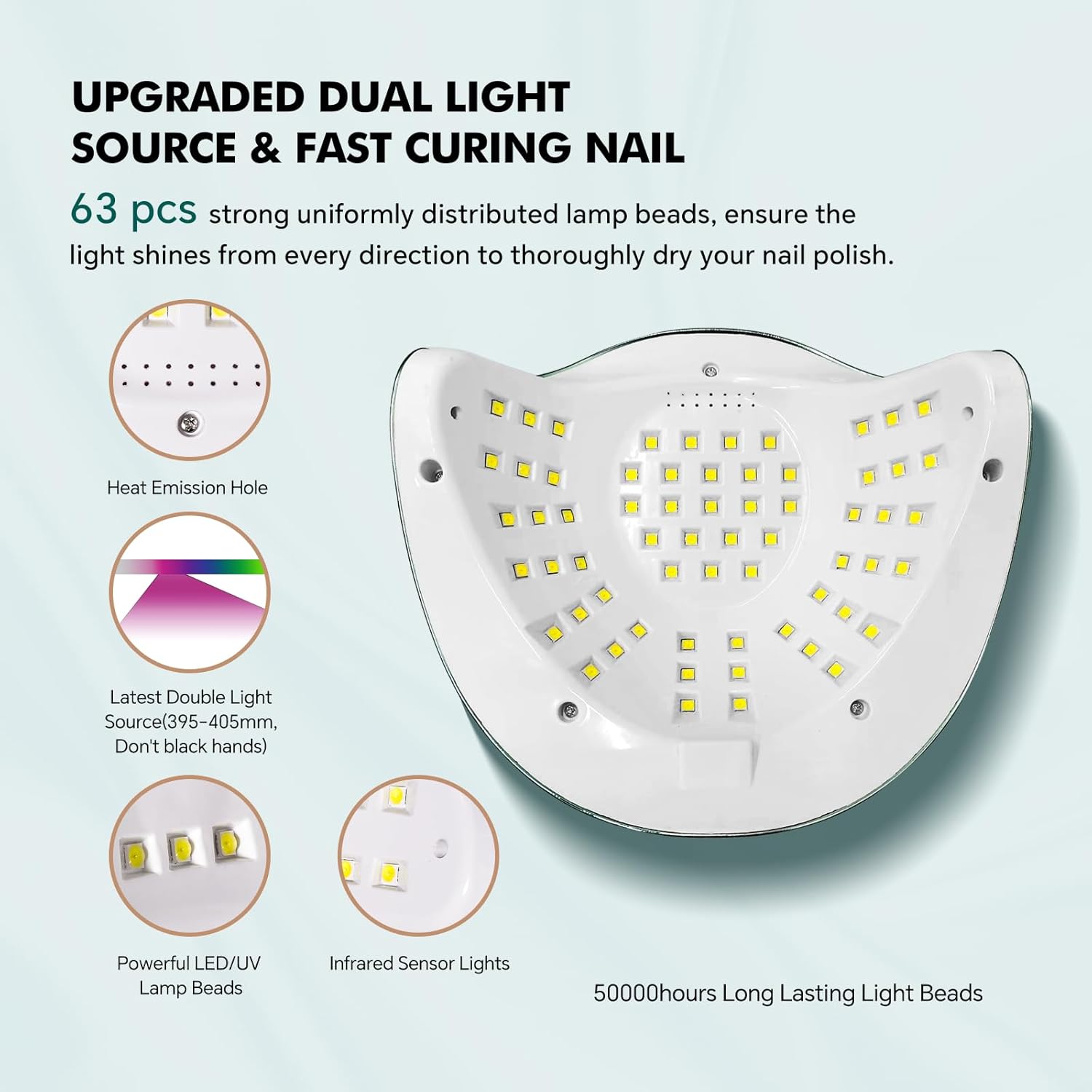 UV Light for Gel Nails 288W UV Nail Lamp with 63 LED Beads for Gel Polish with LCD Display Auto Sensor and 4 Timer Settings Professional Nail lamp