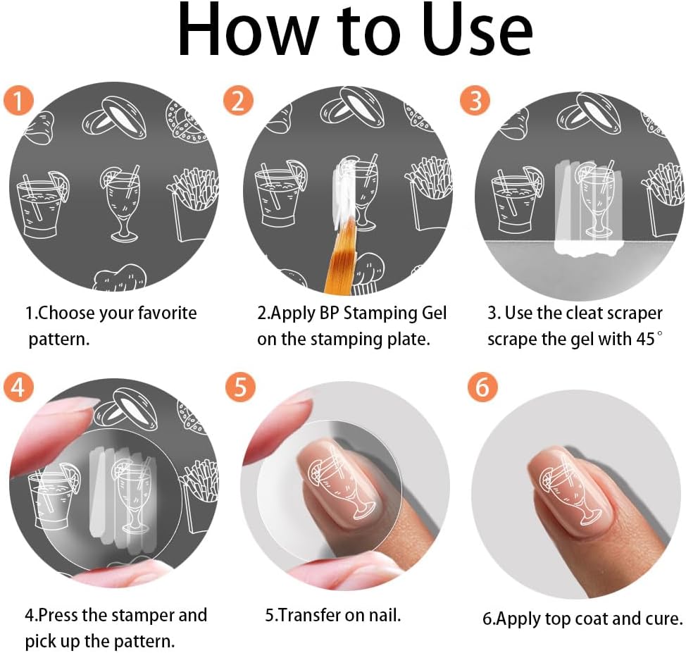 - Easy to Use: You can transfer design template from plate to your nail using professional nail stamping polish gel, and can also be used to reverse stamping, just transfer image to stamper and fill outlines with different varnishes or paint using a brush or dispensing tool, nail stamping plates set creating your unique decals or stickers.