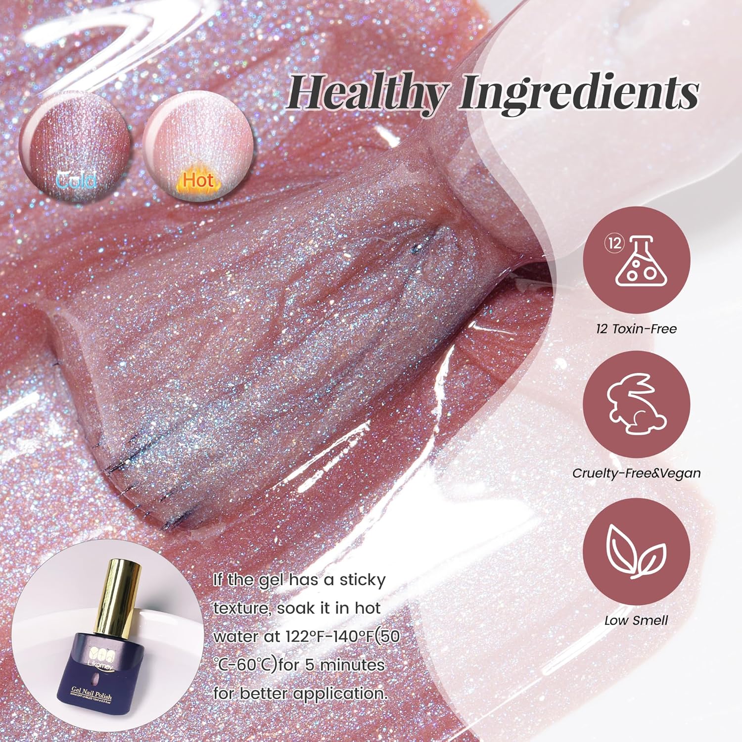 - Warnings&Tips:Please conduct an allergy test before use to ensure safety. This professional formula is for nail application only, avoid eyes and mouth. Keep out of reach of children. Keep bottle tightly capped and protected from light after use.