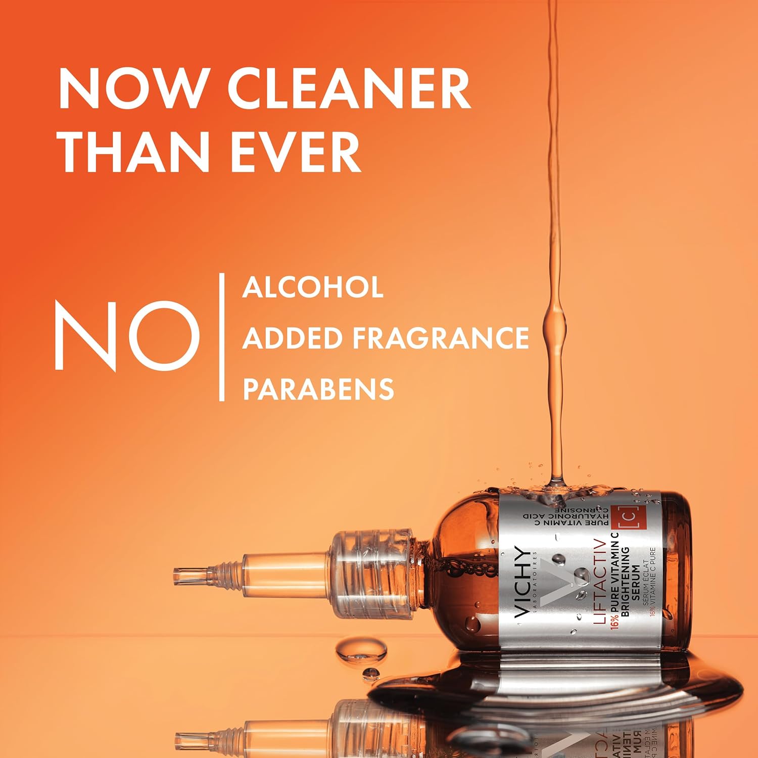 Vichy LiftActiv Vitamin C Serum For Face, Brightening Serum With 16% Pure Vitamin C + Hyaluronic Acid + Vitamin E, Improves Radiance & Firmness, Anti Aging, Protects Skin From Discoloration