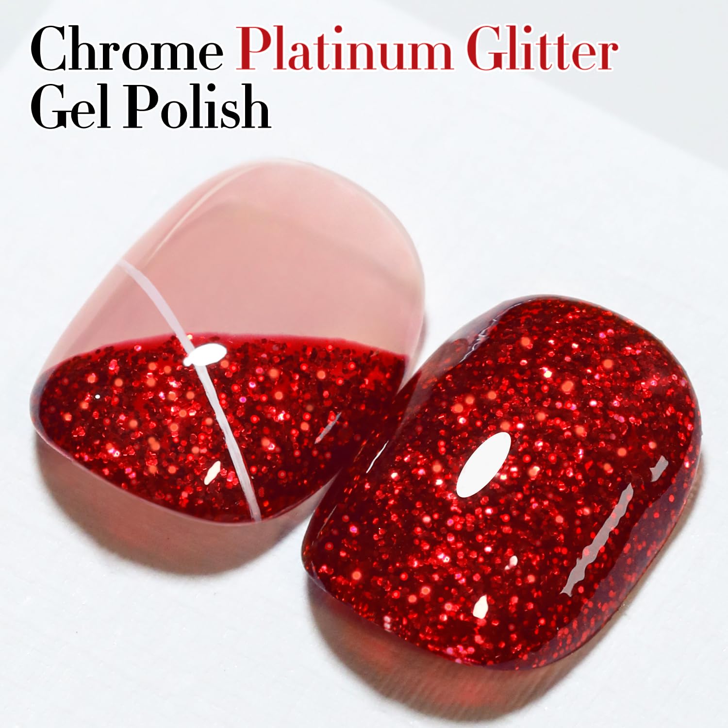 Double Rhythm 15ML Glitter Gel Polish Shimmer Reflective Holographic Color Magnetic for Nail Art Salon DIY at Home (Cherry Red-B1051)