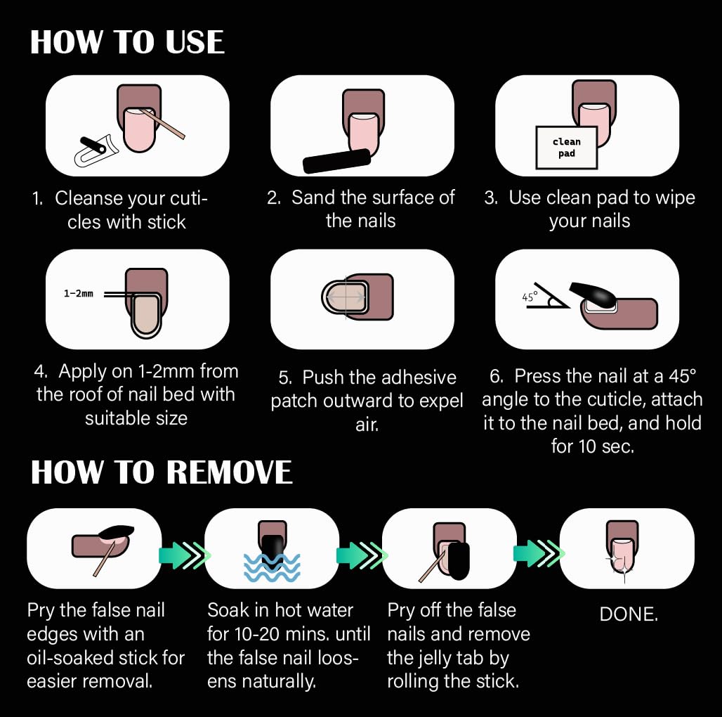 - 【Easy to Apply & Remove】 Each nail adhesive tab has a numbered handle for quick application. DIY-friendly and damage-free—no glue, no mess, no harm to natural nails. Perfect for beginners and professionals alike.