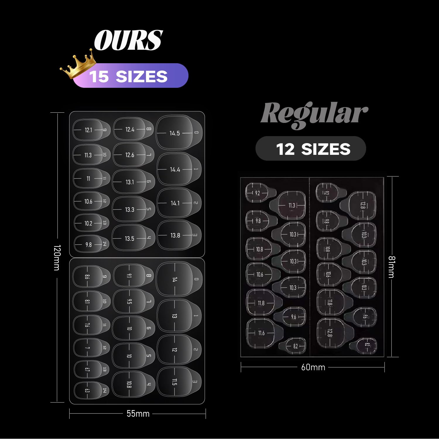 - 【300PCS Nail Sticky Tabs in 15 Sizes】 Includes 10 sheets with 30 nail sticky tabs per sheet (total 300 tabs) in 15 numbered sizes—suitable for most nail beds. Ideal for press on nails, especially long styles.