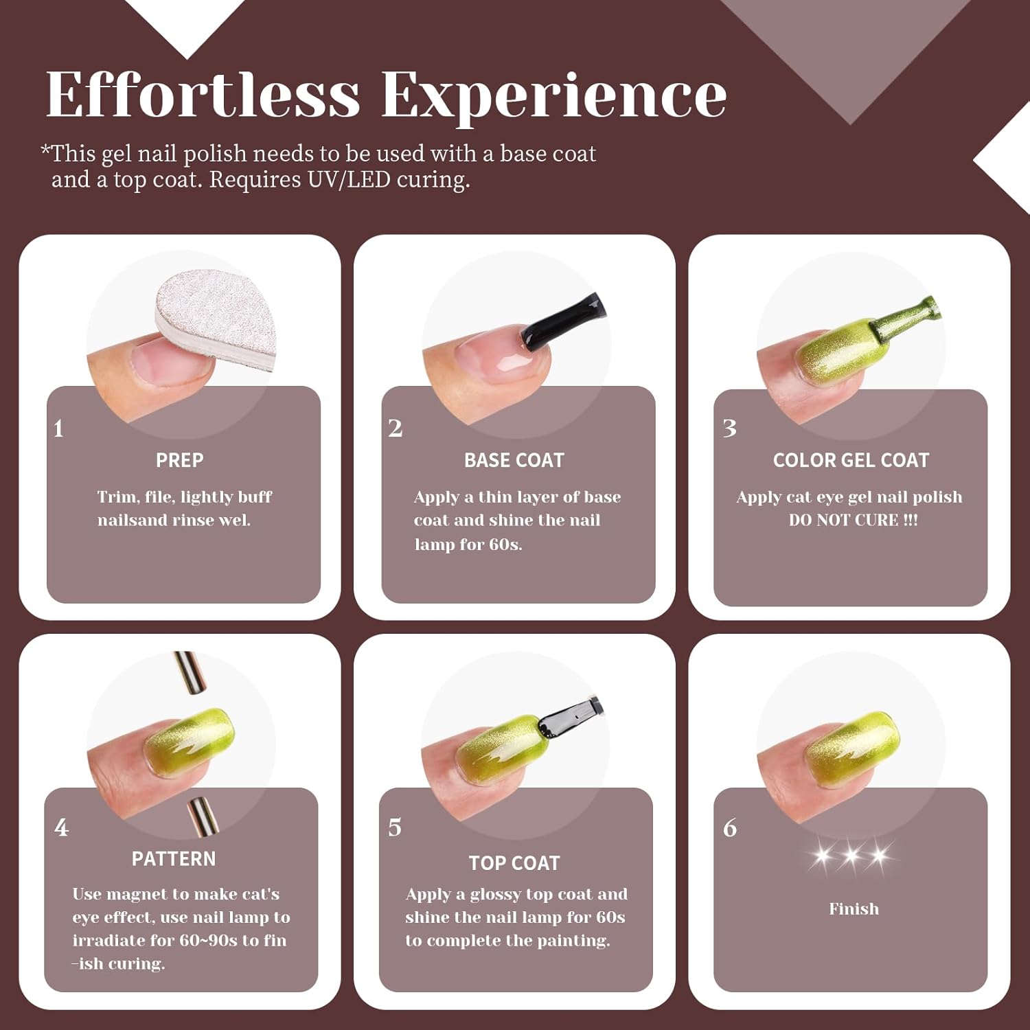 • Achieve professional-quality results from the comfort of your own home. TUTUYU Brown Cat Eye Gel Polish offers easy application and beautiful results every time. Make a statement with nails that are as unique as you are.
