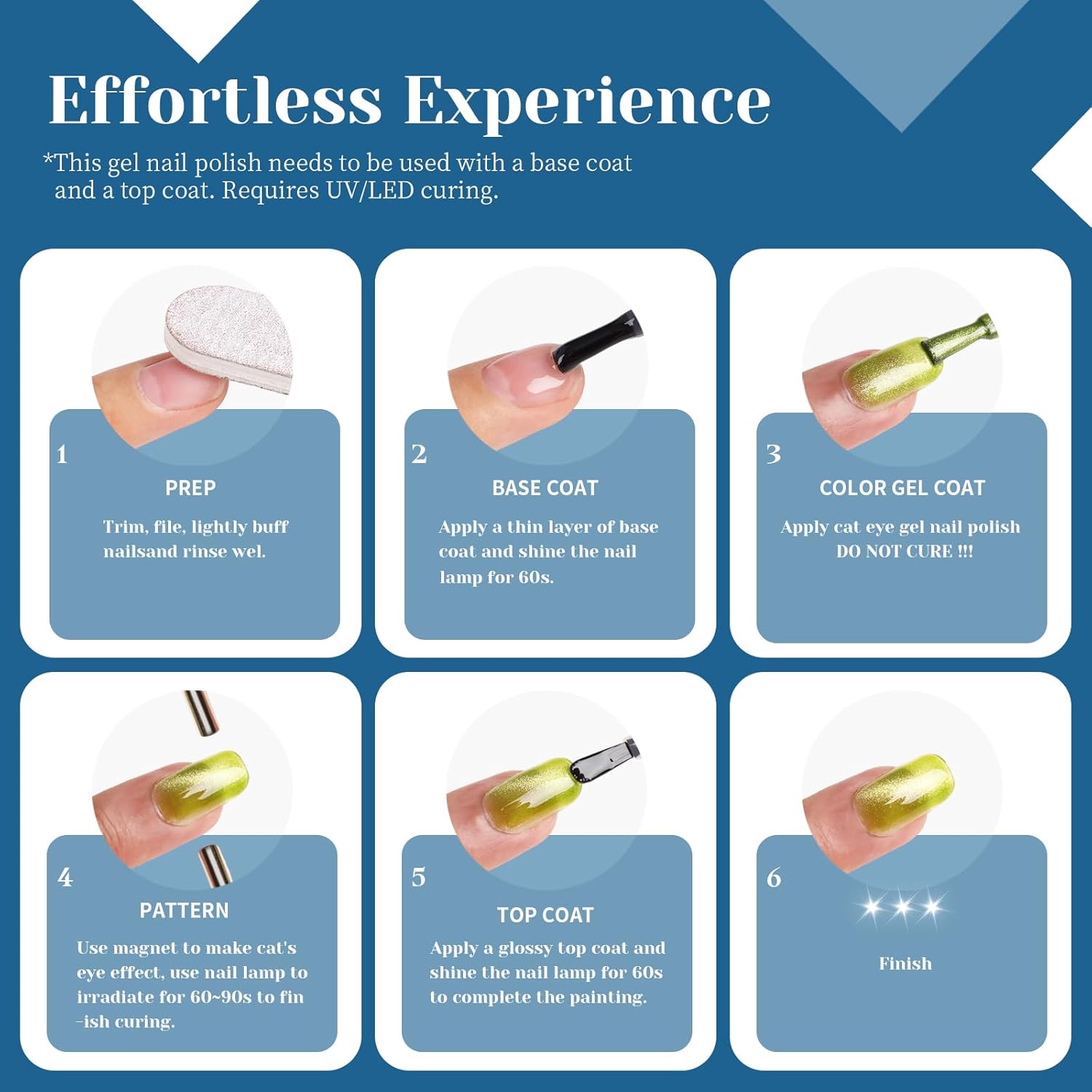 - Our blue cat eye gel nail polish is formulated to be long-lasting and durable. It can with stand daily wear and tear, ensuring that your manicure stays flawless for weeks. Say goodbye to chipped or faded nails with our high-performance gel formula.