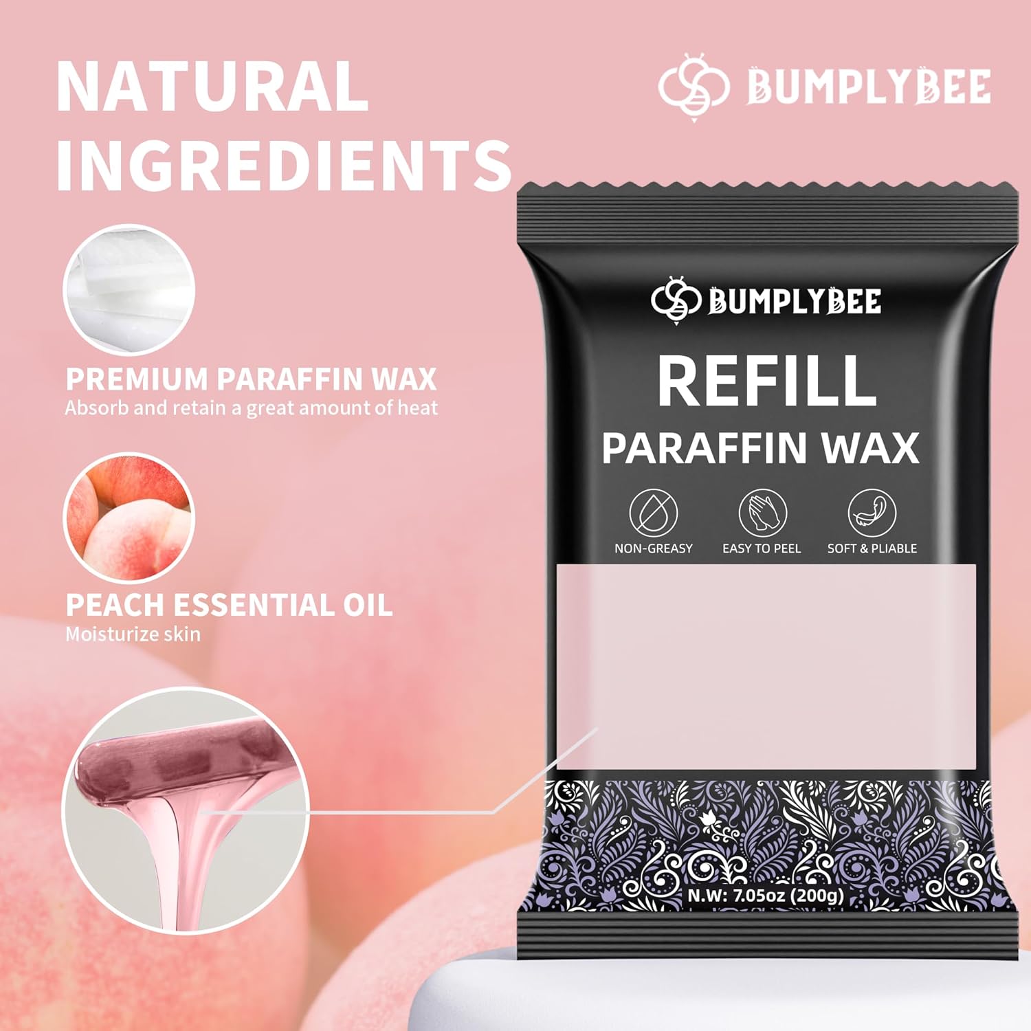 - Natural & Fast-Melting Formula - BUMPLYBEE Peach Paraffin Wax is crafted with natural paraffin and enriched with peach essential oil for a serene experience; Designed for paraffin wax bath enthusiasts, our wax melts quickly and evenly, saving time and ensuring a swift, rejuvenating skin-care session; Ideal for regular use on hands and feet, our paraffin wax for hands and feet enhances your home spa experience, making it smooth and effective