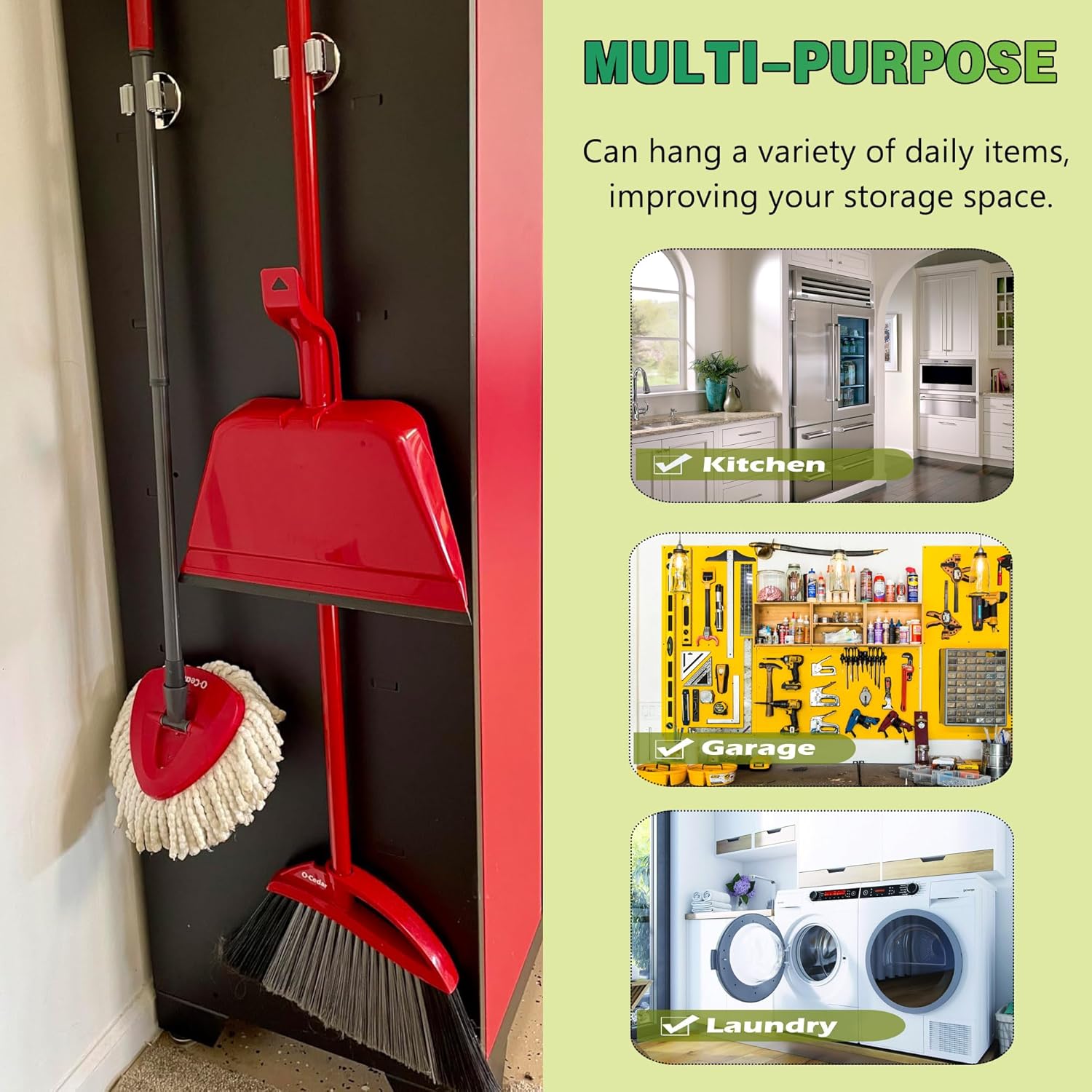 - [Pakage List]: 4 pcs Magnetic Mop Broom Holder. lt's a great gift for fathers, brothers, husbands or housewarming for friends! This holder is the perfect solution to reduce clutter, increase space, keep items in order, and quickly find what you need.