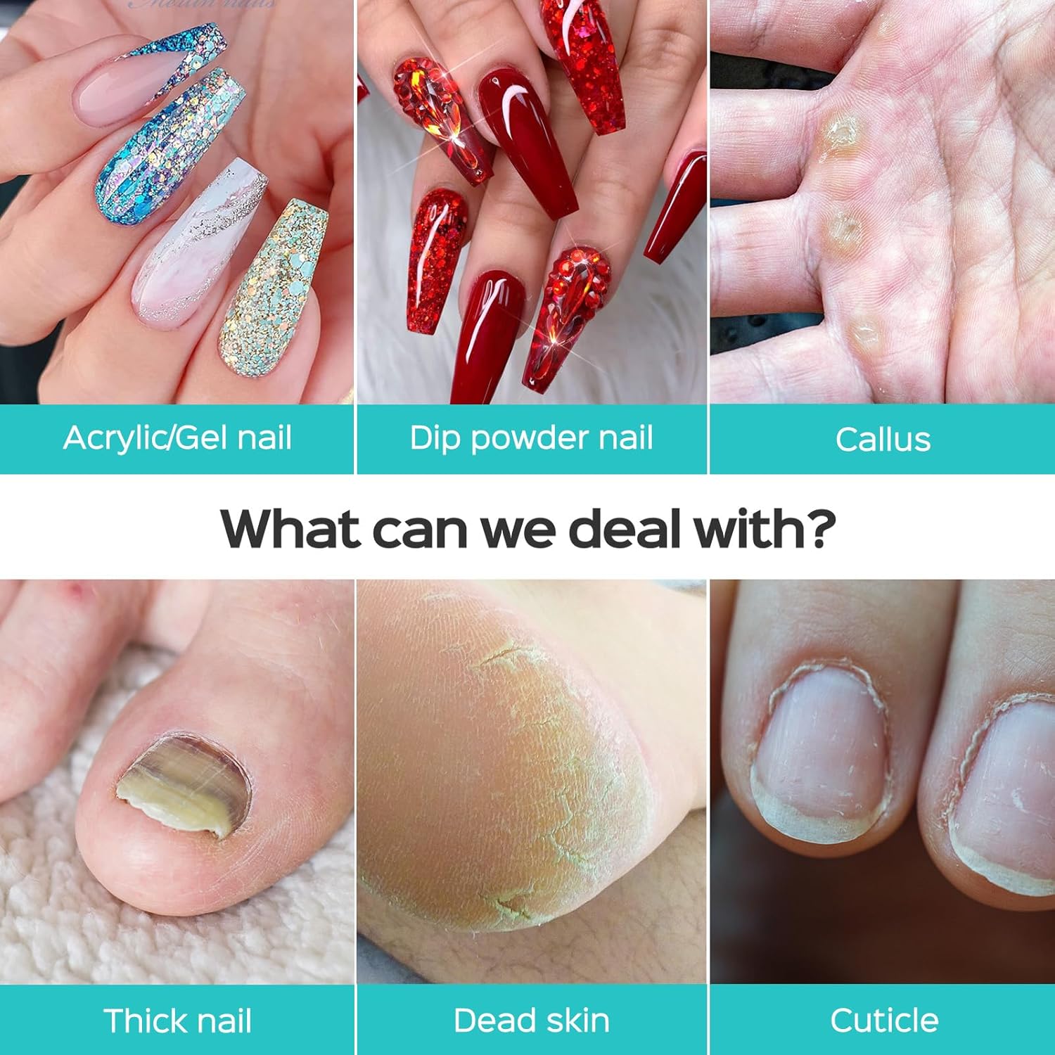 - Multifunctional & Easy to Use: This cordless electric nail drill is not only suitable for acrylic nails, gel nails, dip powder and natural nails, but also can remove cuticles, dead skin, thick nails and calluses. Suitable not only for women and men, but also effective for seniors in gently exfoliating rough skin, the stepless speed adjustment method can be accurately and easily applied to various manicure and pedicure procedures