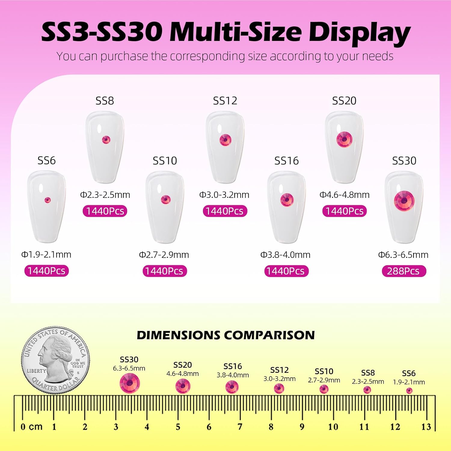 F Rose Flatback Rhinestones, Glass Rhinestones for Nail Art and Craft, Glue Fix, Loose Crystal Gemstones(F Rose, SS10, 1440pcs, 2.7-2.8mm)
