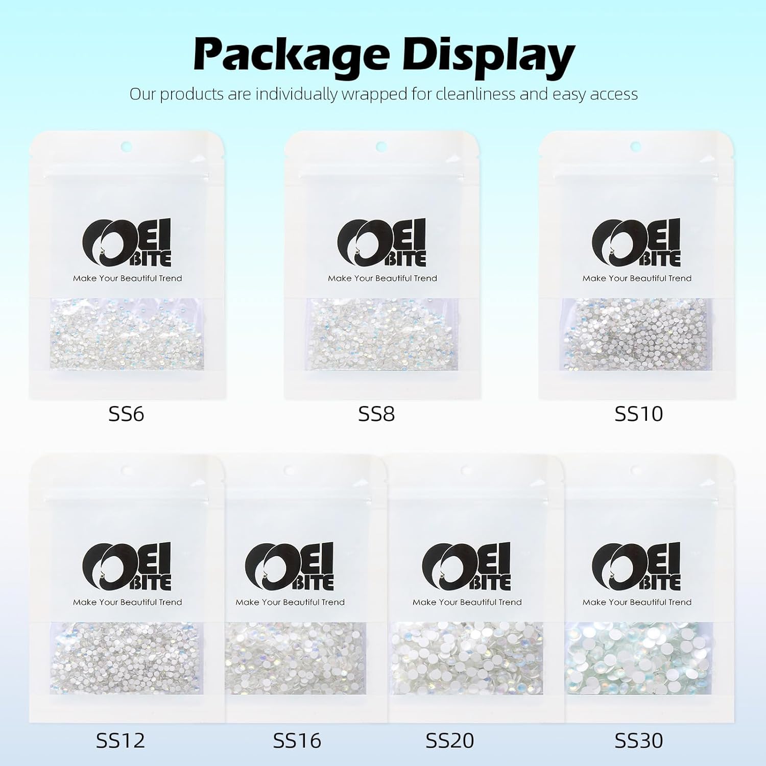 - Product Packaging: Bags packaging SS12 2.9~3.0 MM - 1440 Pcs F White flatback rhinestones