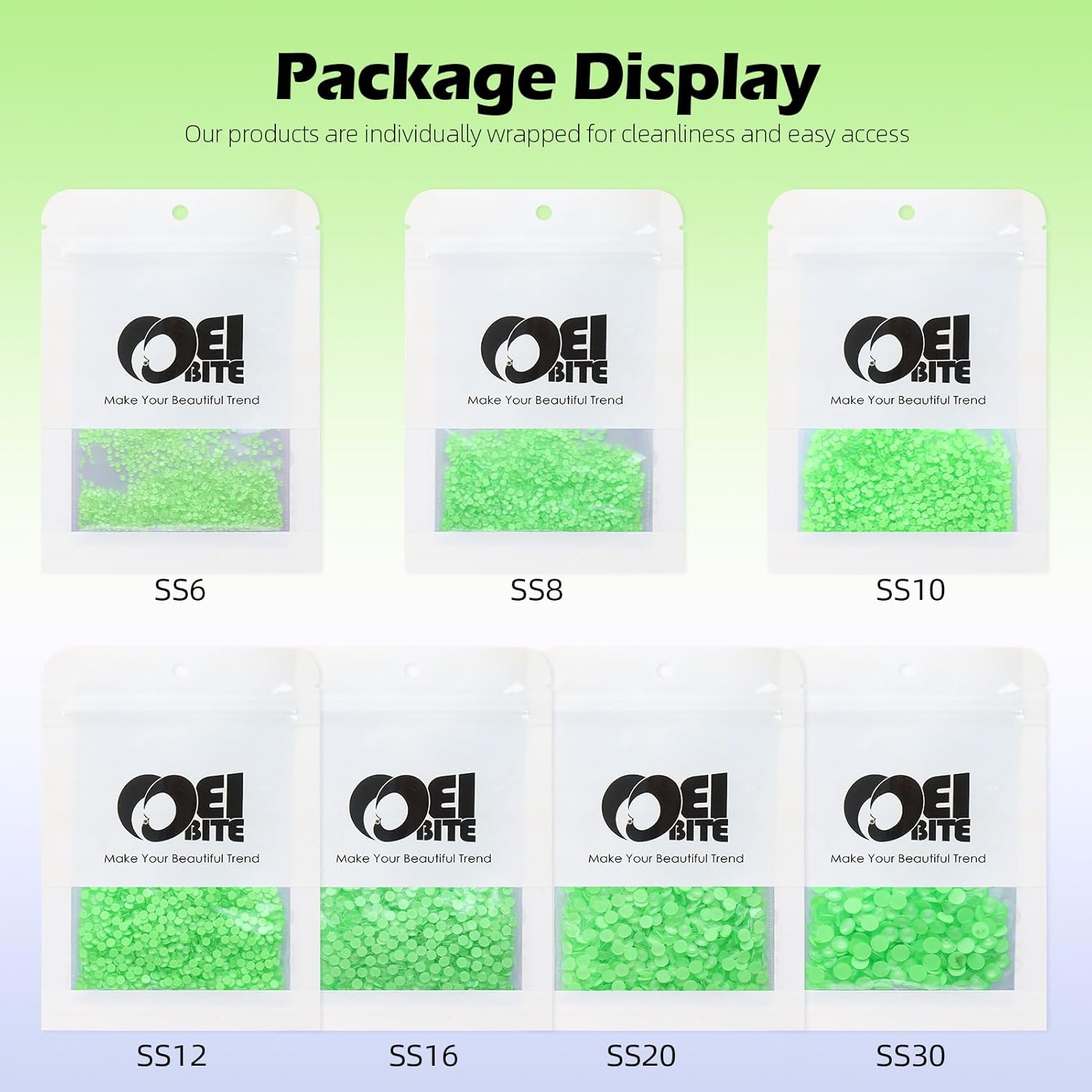 - Product Packaging: Bags packaging SS8 2.3~2.5 MM - 1440 Pcs Mocha Lt.green flatback rhinestones