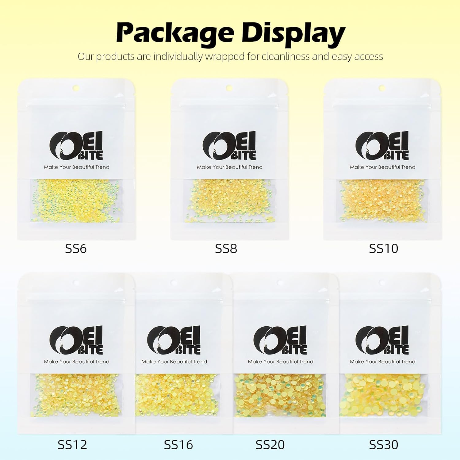 - Product Packaging: Bags packaging SS8 2.3~2.5 MM - 1440 Pcs F Yellow flatback rhinestones