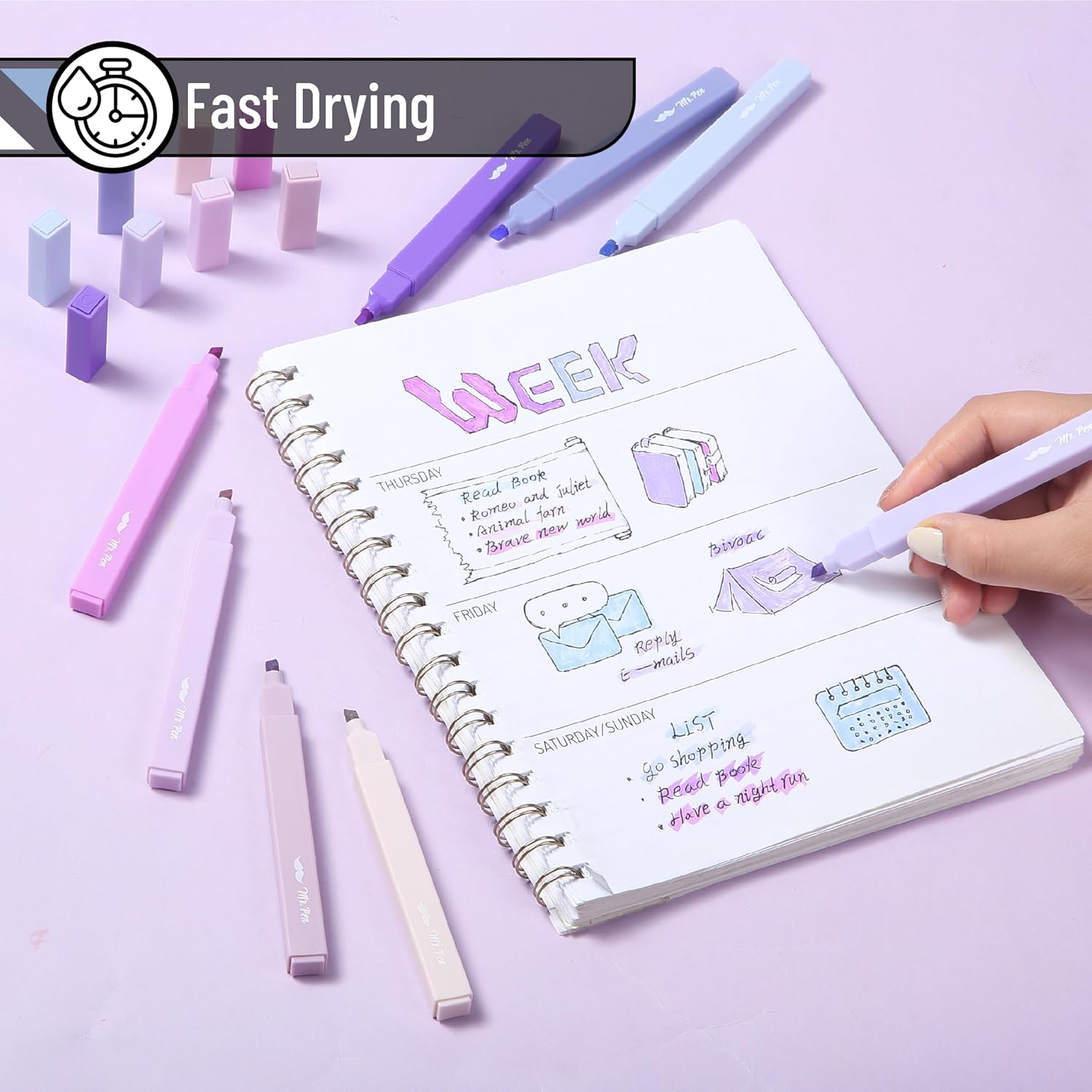 - Mr. Pen aesthetic highlighters come in a set of 8 dreamy shades of purple, perfect for adding a touch of elegance to your notes and projects.