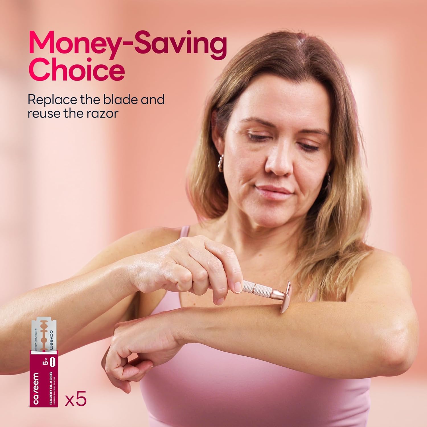 - YOUR SHAVING SKINCARE WITH CAVEEM : Our double-sided razor is crafted from upscale, corrosion-resistant metal, ensuring durability and long-lasting use. The stainless steel blades wrapped in wax paper offer better safety, smoother and convenient shaving. The attached razor blades can last about a year. Take pleasure in an irritation-free shaving every time