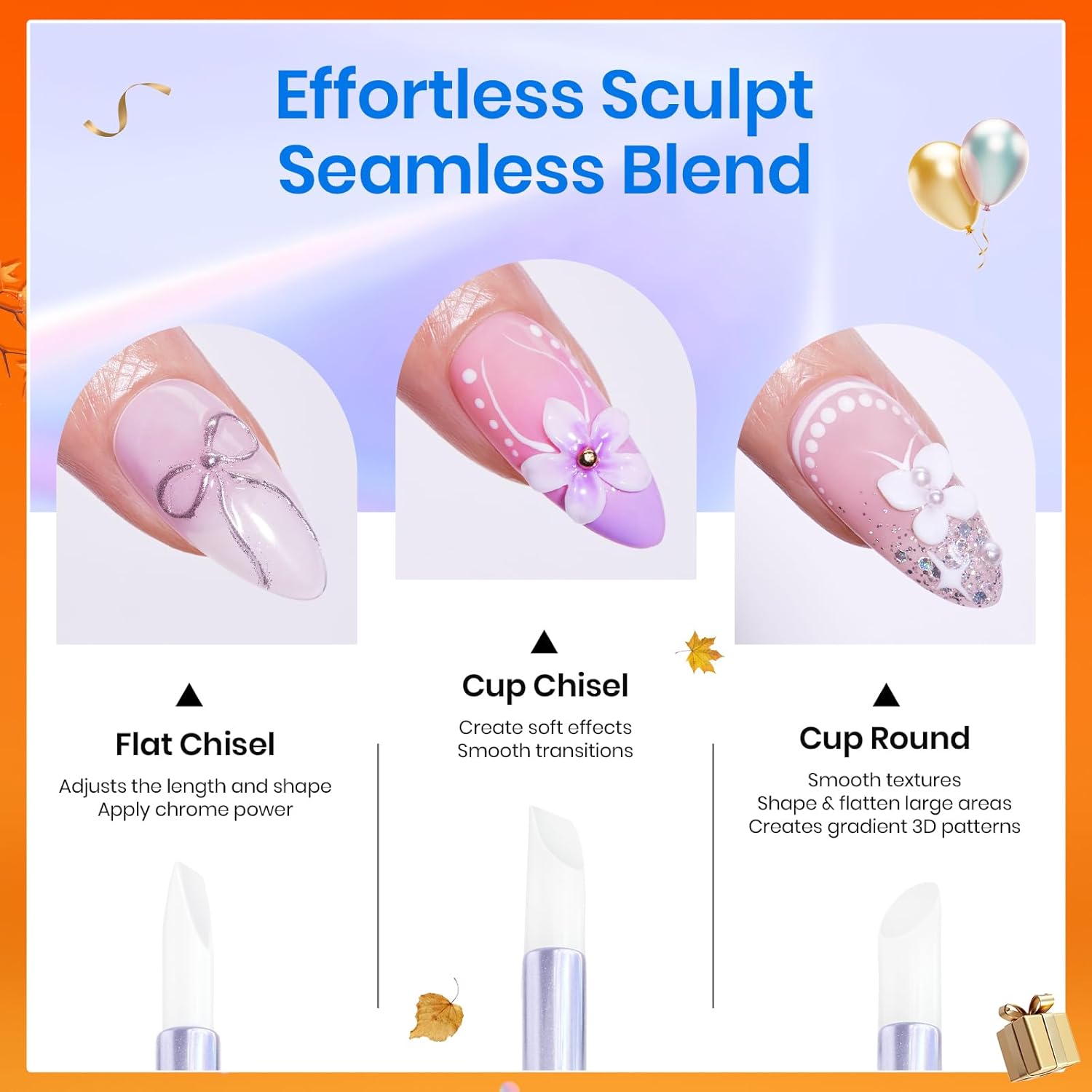 • 5Pcs Silicone Nail Tool: Equipped with five different silicone tips, it effortlessly carves intricate flowers and various patterns onto nails, catering to all your creative needs for 3D nail art. Whether you prefer minimalist styles or grand designs, it handles them all with ease.