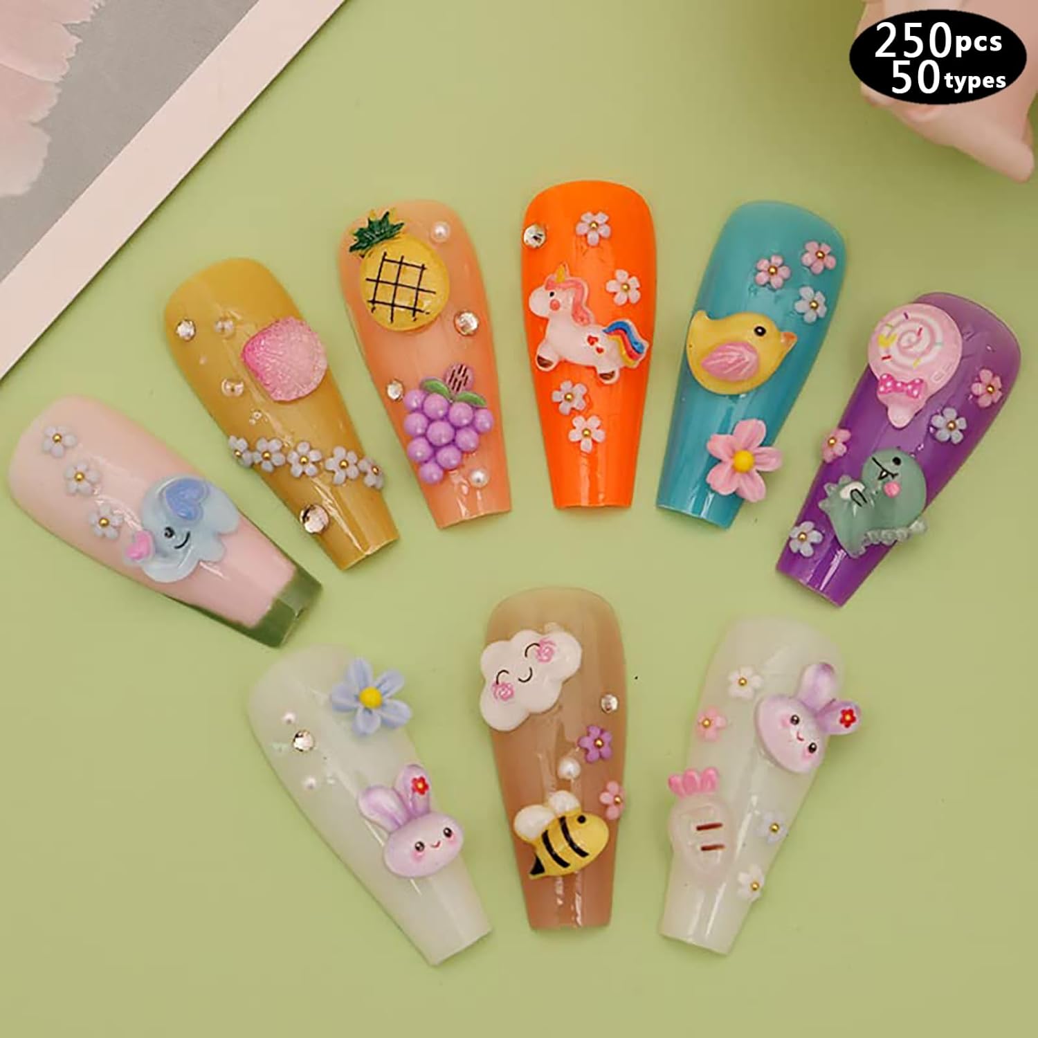 250pc 3D Nail Charms Set - Diverse Shapes & Colors for Acrylic Nails & DIY Crafts (#2)