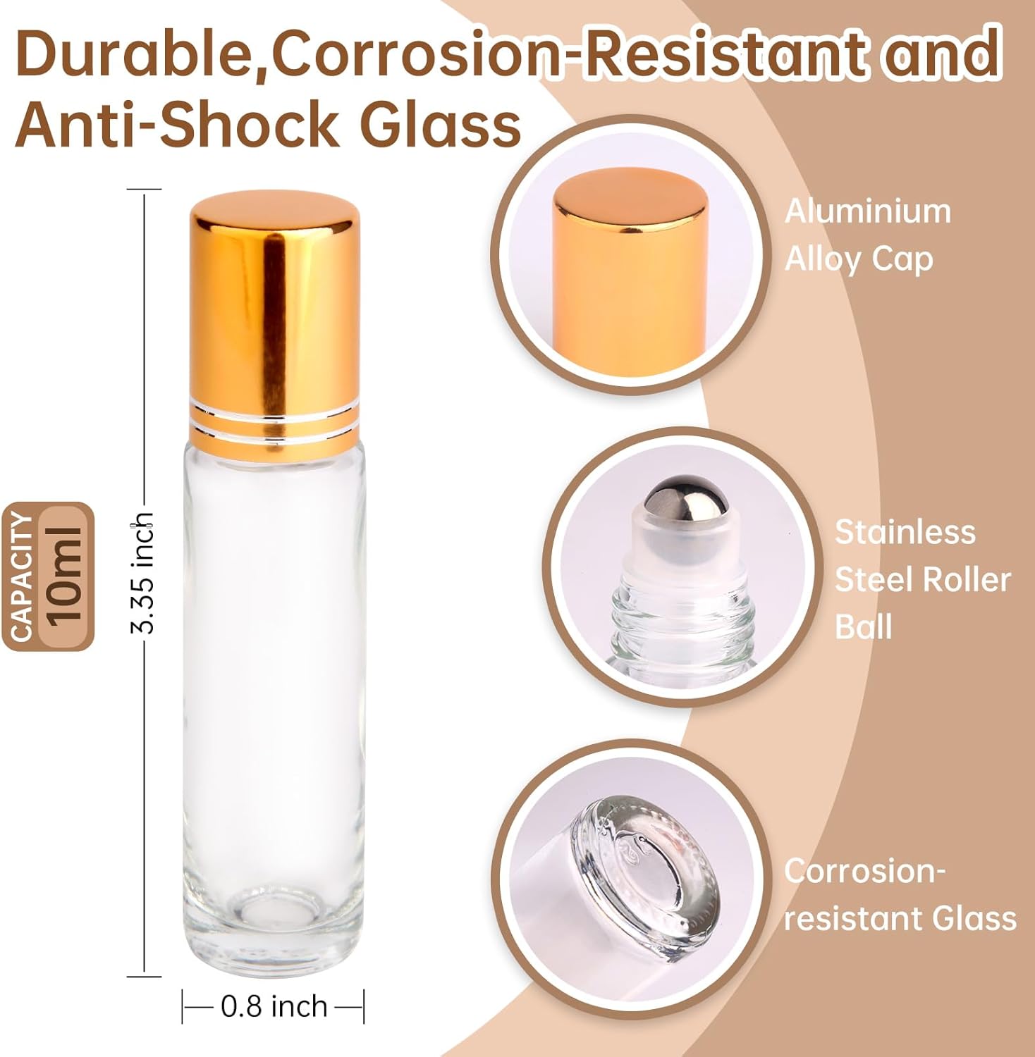 - Luxury Caps: The cap outside is made of plated aluminum alloy.Golden colour looks ritzy.Caps and the roll balls are designed pressed when screw tightened.it can prevent any types of leakage.