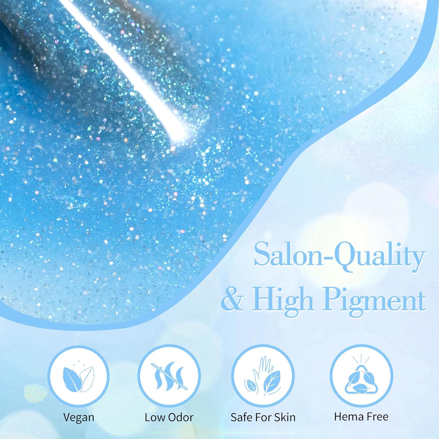 - Long-Lasting Durability: Designed for extended wear, this glitter gel polish is chip-resistant and maintains its vibrant shine for up to three weeks