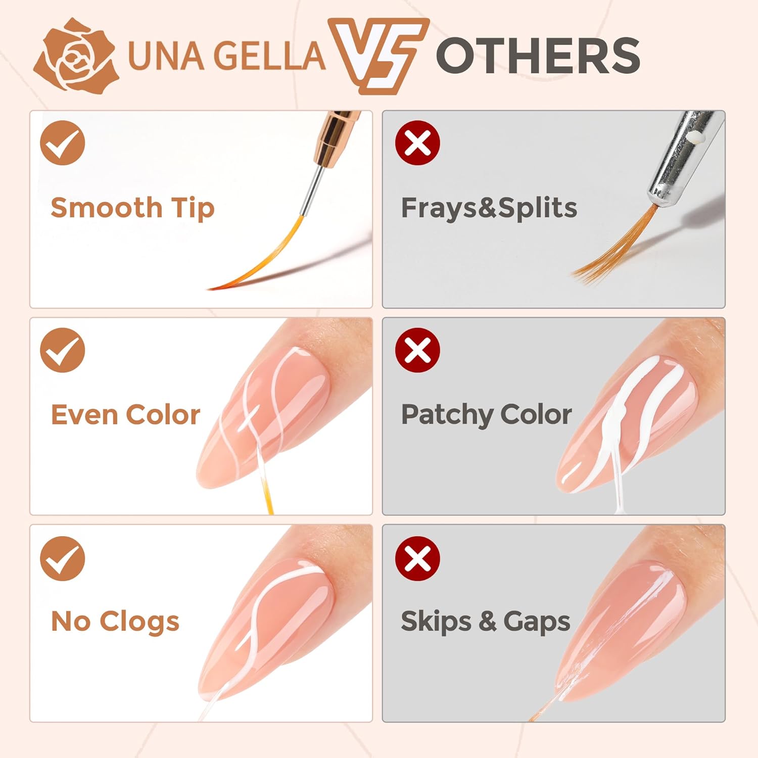 UNA GELLA Metallic Nail Art Brushes, Liner Pens Set 5Pcs Black Color For Nail Art Gel Polish - Thin Detail Nail Art Design Painting Brush Set For Nails Gel Fine Drawing Nail Tools Sizes 7/9/11/15/25mm