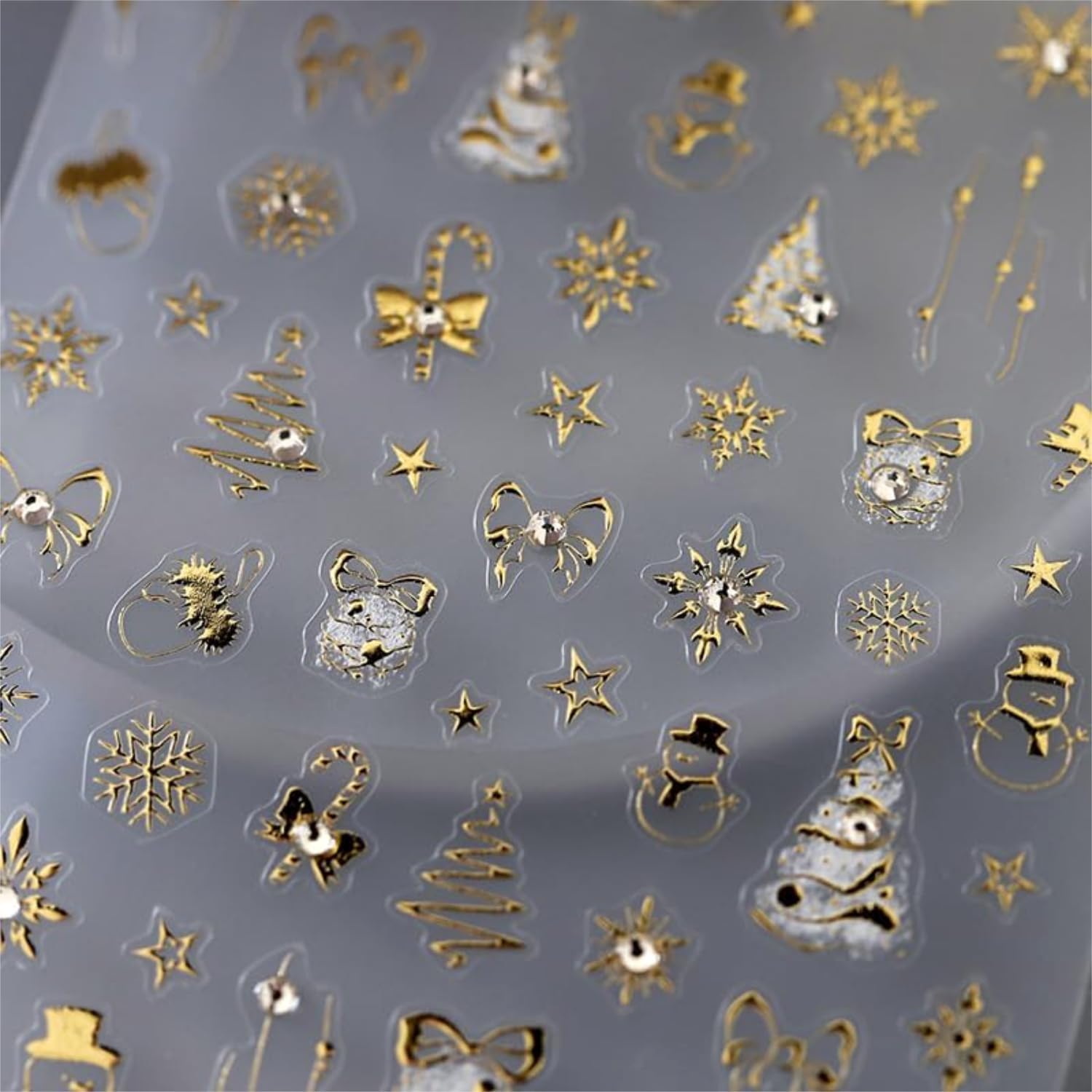 Christmas Nail Stickers 5D Embossed Gold Christmas Nail Decals Holiday Nail Art Stickers with Snowman Xmas Tree Star Snowflake Nail Design Christmas Nails Supplies for Women Girls