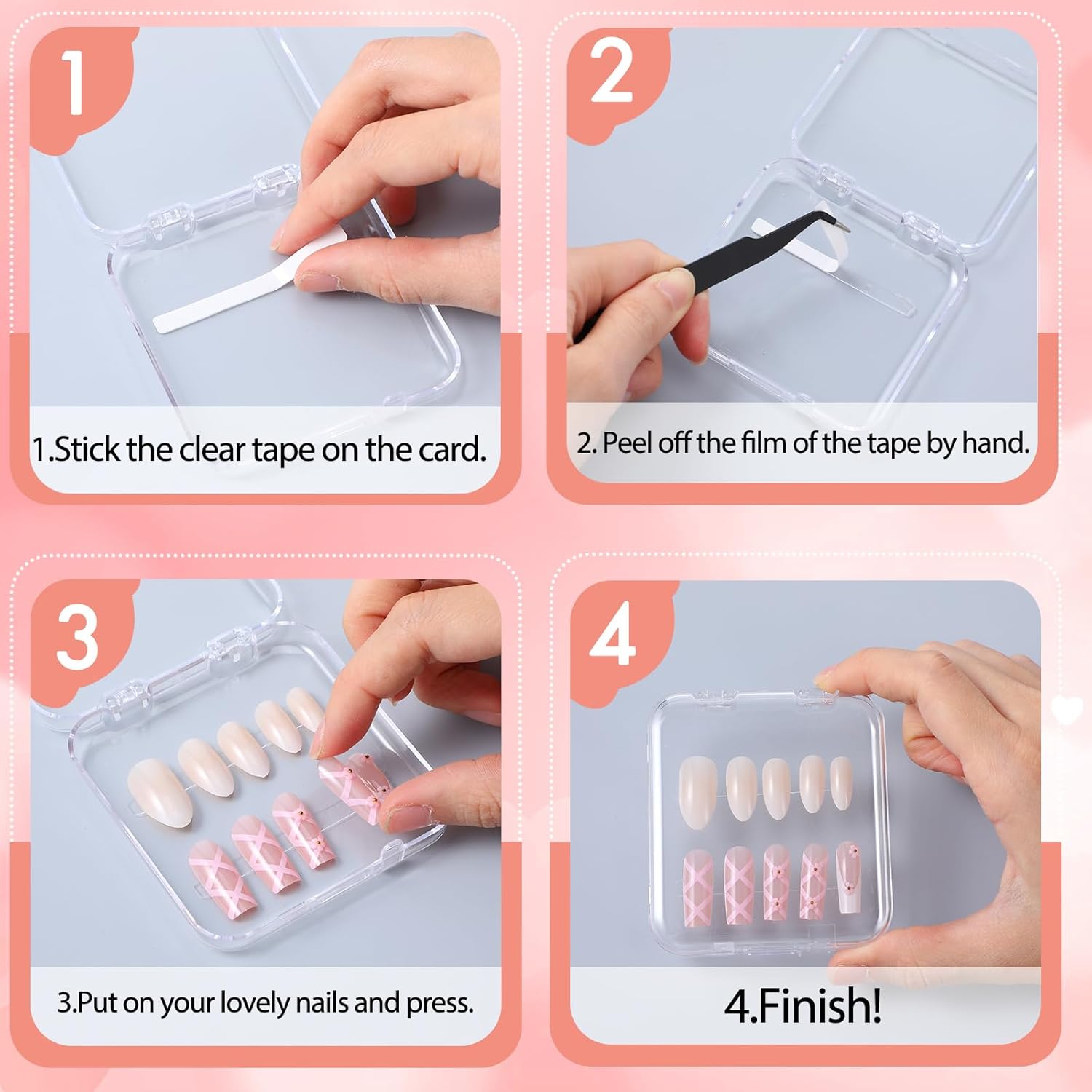 - 【High Quality Material】Unlike other ordinary tapes, our double sided nail tape are made of high-quality acrylic material with high transparency and high viscosity. This high-transparency acrylic press on nail tape is crystal clear and will not affect the appearance of your design.