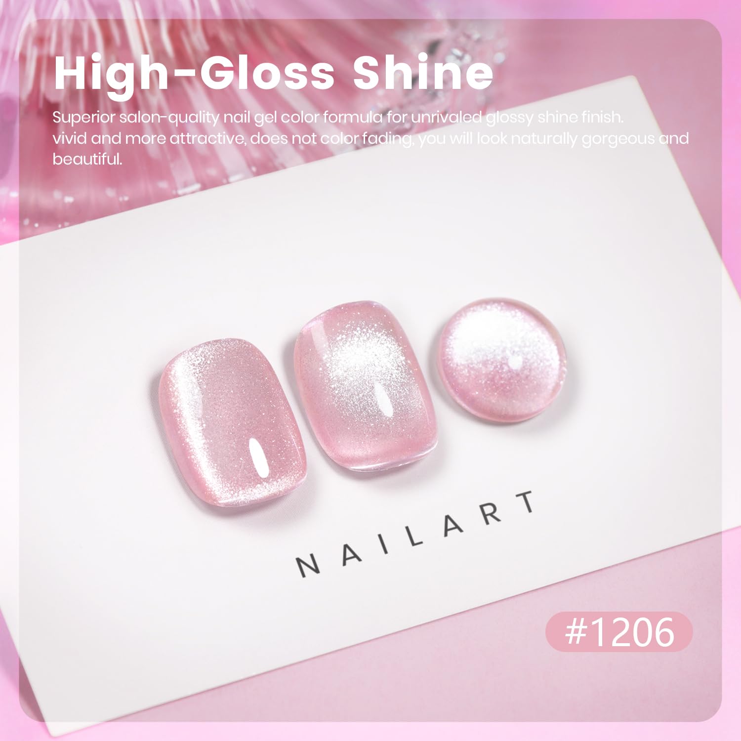- NUDE PINK CAT EYE EFFECT:Cat eye gel nail polish is a truly dreamy effect that reflects light in the same way a crushed diamond texture might. Made with fine magnetic shimmers and diamond silver pigments, our new shades create optical nail-lusions that move with every angle