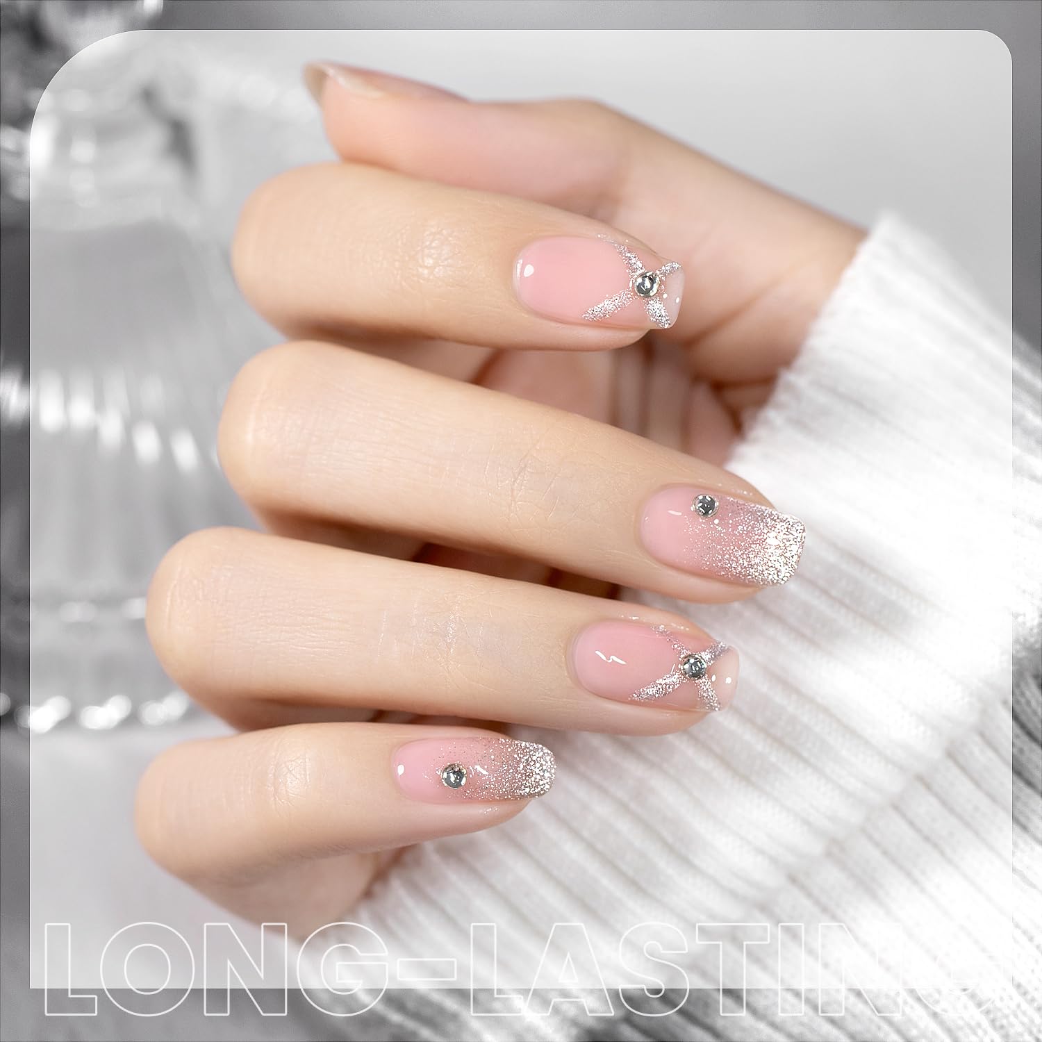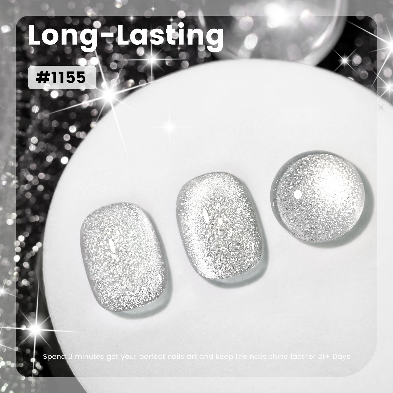 - VELVET GLITTER GEL POLISH:Package includes 1 bottles 15ml silver white color cat eye glitter gel nail polish and 1 piece magnetic stick which suit for all skintone. Diamond cat eye gel polish have a beautiful refection, look like little diamonds on your nails. This cat eye gel polish is easy to apply and soak off