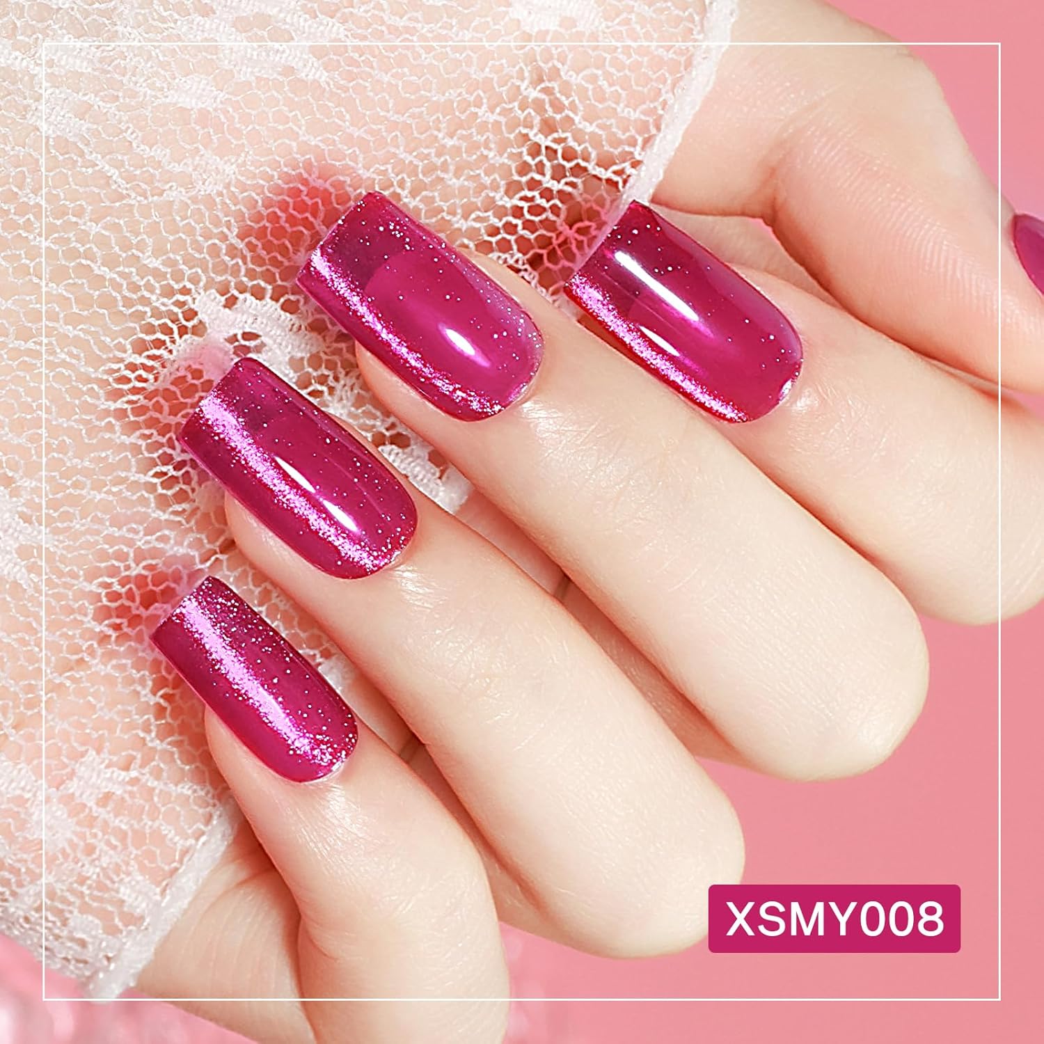 - Included Components : 1 double-headed magnet stick, 8 colors pink series magnetic gel polish