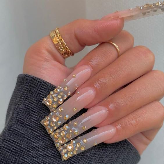 Nail Rhinestones - 3D Multi Shape Size, Flat Back, Manicure Rhinestones Charms, Champagne Gold Gems, with Kit, for Nail Art, Bedazzling Acrylic Nails, DIY Decor