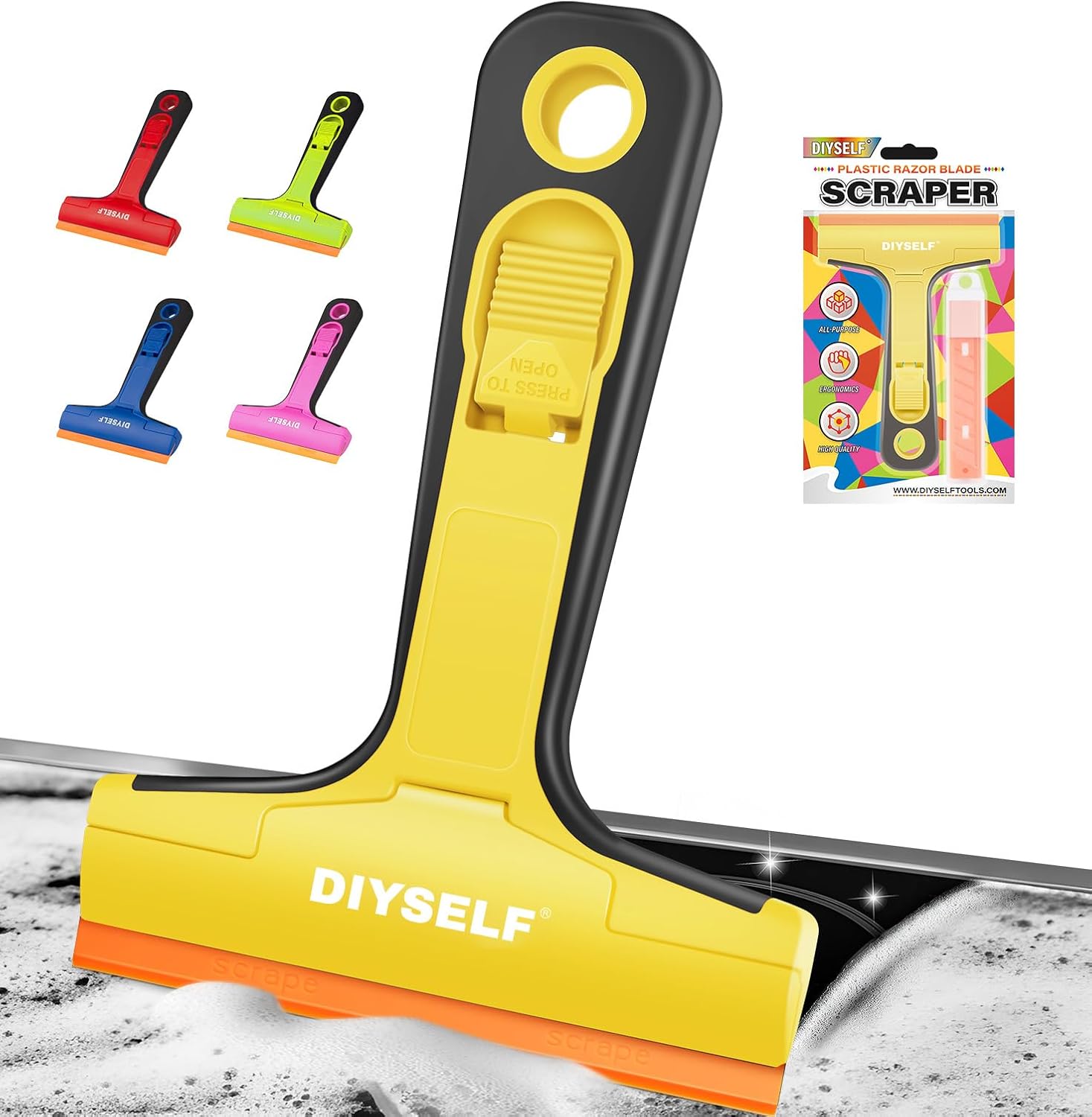 DIYSELF-Razor-Blade-Scraper, 1 Pack Razor Blade Scraper, Extra 5 PCS Orange Plastic Blades, Razor Blade Scraper Tool for Cleaning, Glass Scraper for Windows, Razor Scraper Tool for Car, Cooktop