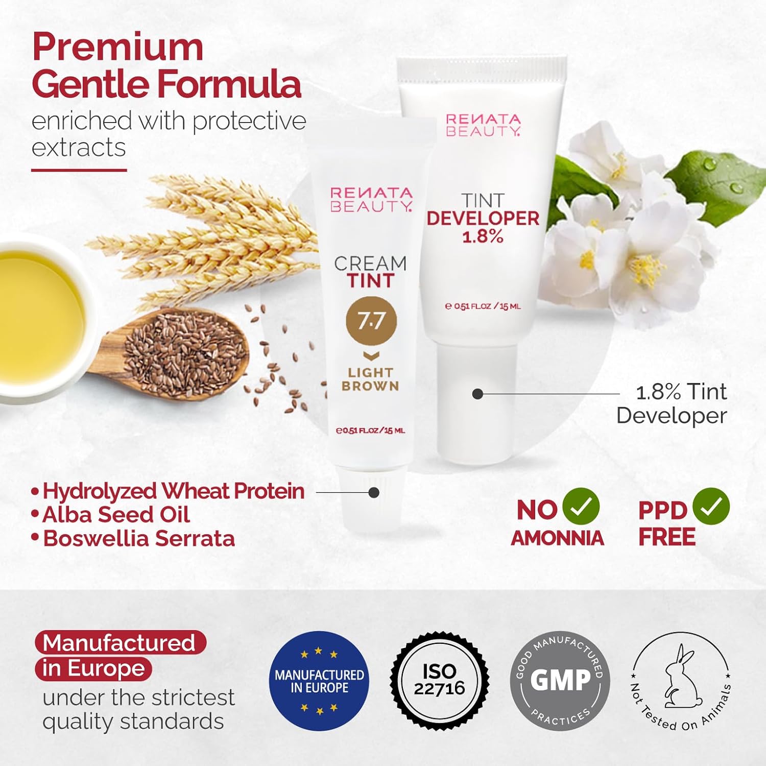 RB RENATA BEAUTY Tint Kit – Cream Hair Dye Kit with Developer and Application Brush for Spot Coloring - Covers Gray Hairs, Smudge-Proof, Long-Lasting Up to 4 Weeks, 20 Applications [Light Brown]