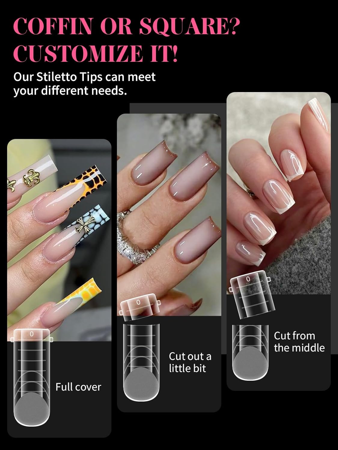 - 【Nail Form Mold with 12 Sizes】288pcs clear nail forms offers 12 different nail sizes , and each size of long nail tips is separated by a small grid, a total of 12 grids, so they're easy and convenient to choose the suitable size to meet your nail's need.