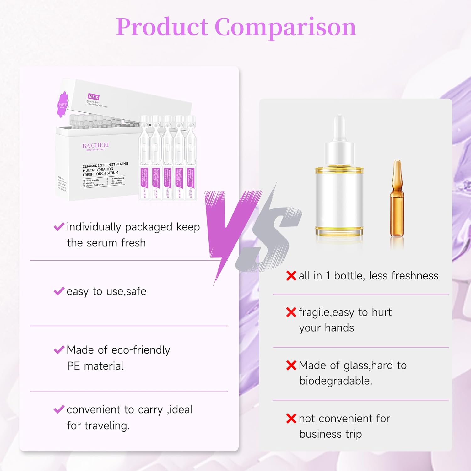 - Individually packaged of ceramide serum-It comes with 30 individual ampoules of cermide serum,each 1.8ml.They are convenient,keep the serum freshness and ideal for traveling,holiday vacation,business trip,etc.Suitable for your dry or sensitive skincare anytime.