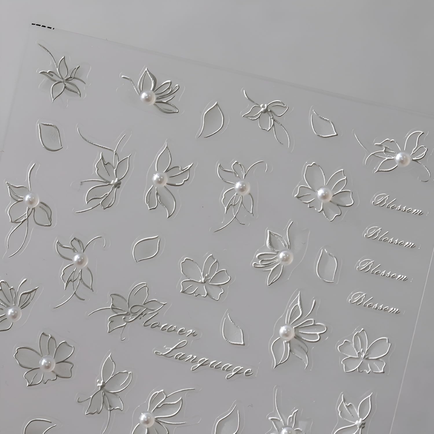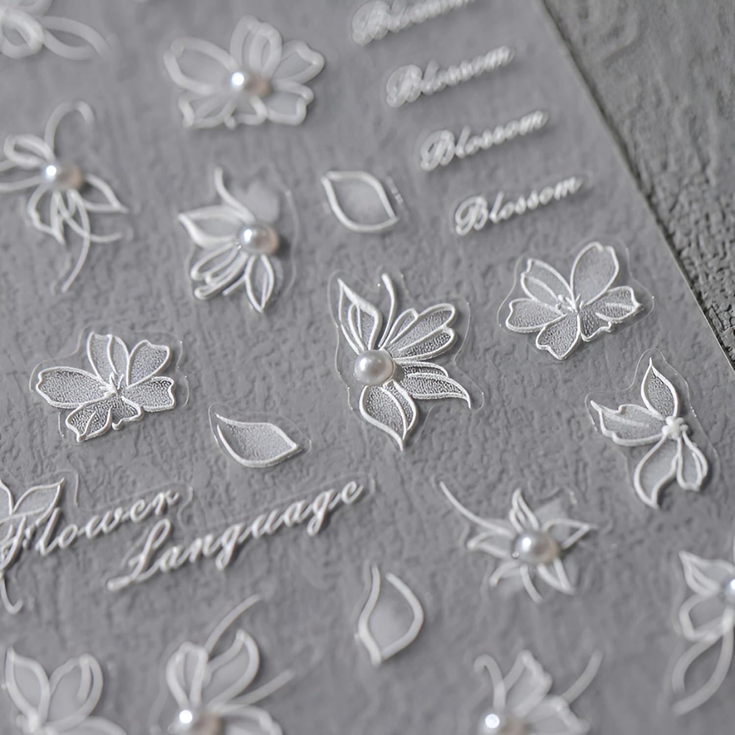 White Flower Nail Art Stickers 5D Embossed Spring Summer Nail Stickers for Nail Art Flower Nail Decals Self Adhesive White Pearl Floral Decoration Accessories for Women Girls