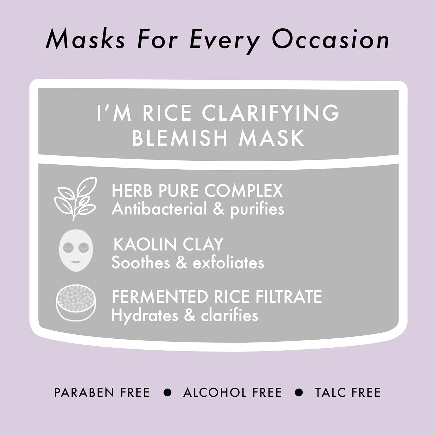TONYMOLY I'm Rice Clarifying Skincare Set – 3-Step Face Care for Clear, Hydrated Skin – Includes Enzyme Powder Cleanser, Blemish Mask & Nourishing Sheet Masks – Gentle Exfoliation & Oil Control