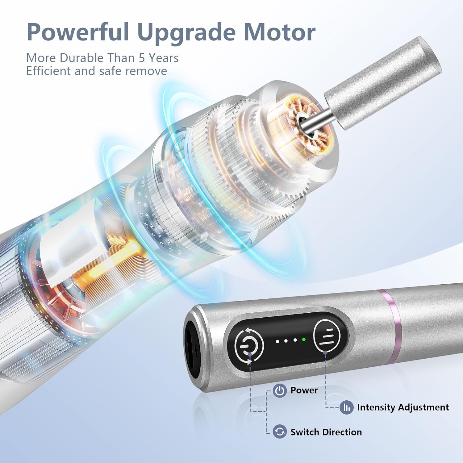- 1.5h Charge, 7h Use: TUOBEO rechargeable cordless nail drill is designed for ultimate convenience, allowing you to enjoy salon-quality manicures and pedicures anytime, anywhere. With its long-lasting 650 mAh battery life offers an impressive 7 hours of continuous use after a 1.5-hour charge, ensuring you have ample time for your nail care routine. Its lightweight and compact design ensures it fits easily into your purse or carry-on bag, so you never have to compromise on nail care
