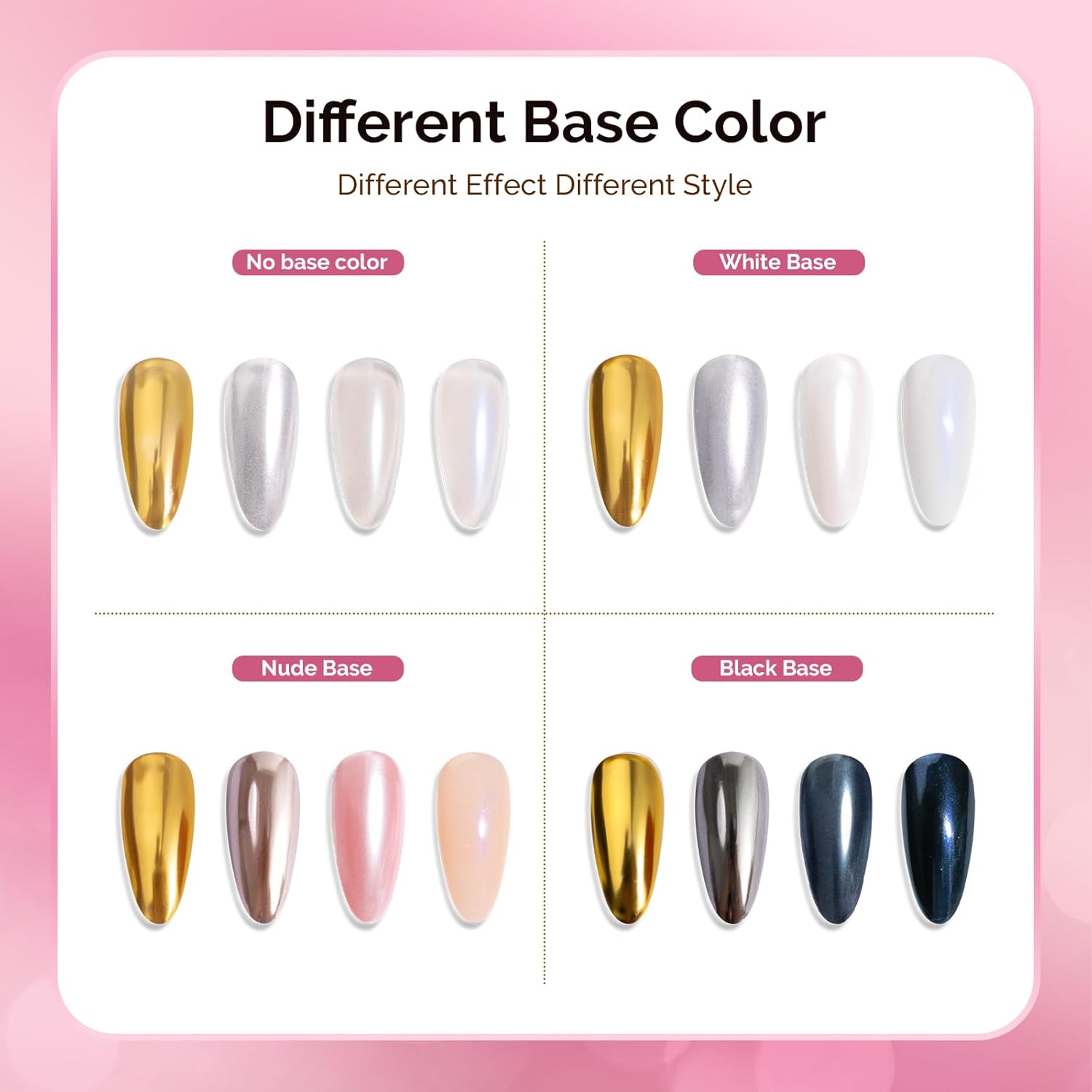 - Wide Range of Applications: Suitable for UV gel nails, acrylic nails,natural nails or false nails.Easy to get a salon grade chrome effect without special techniques.Powder is easy to apply and suitable for beginners