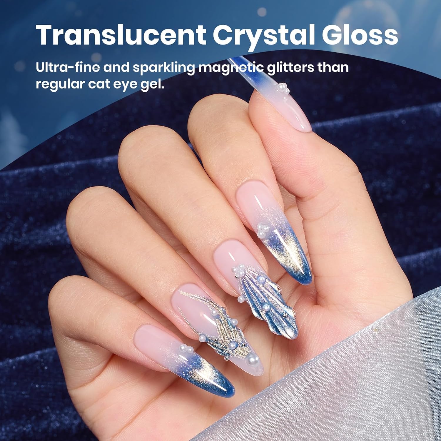 - 【Frosted Sapphire Fall Cat Eye Gel】Shine like the stars with this icy blue cat eye gel polish. Its cool undertone naturally brightens any skin tone, while gold powder create a luminous, glassy finish. Inspired by the night sky, it delivers a flowing galaxy effect that's perfect for dreamy, futuristic, or elegant evening looks.
