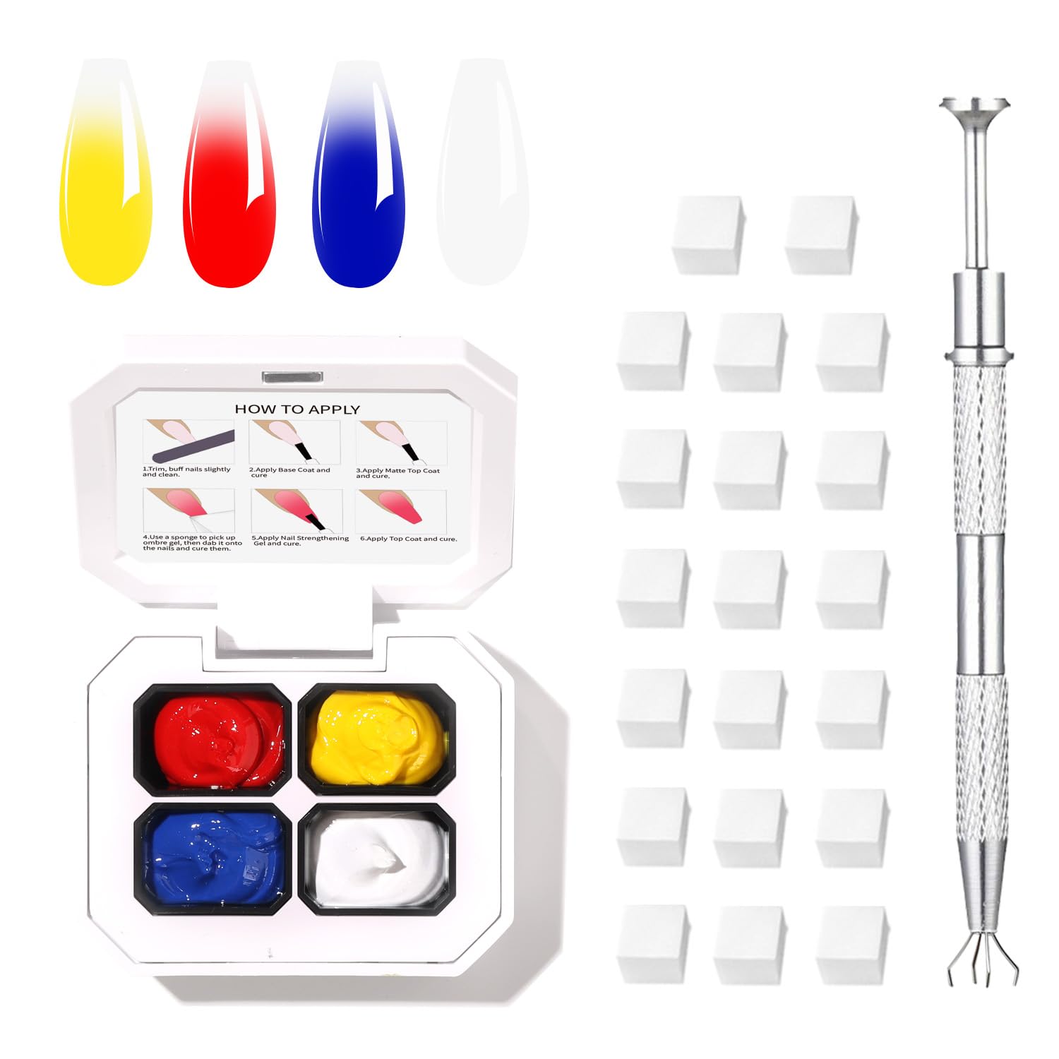 - Included Components : Ombre gel, Nail Sponge Blocks, Metal Grabber